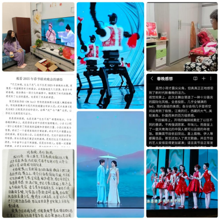 除夕夜,同学们和家人一同观看春晚,并带着思考与探索的目光感受这场视听盛宴。24级医疗器械维护与管理3班通过线上平台开展了别开生面的“春晚观后感”分享会。同学们踊跃发言,高赫彤同学激动地说:“那些运用3D投影、全息舞台技术的节目太震撼了,原来科技能让艺术表演如此精彩,我以后也要努力学习科学知识,探索更多创新能力。” 赵晋彬同学感慨道:“戏曲联唱让我领略到传统戏曲的魅力,不同剧种的独特唱腔和表演形式,让我感受到中华文化的博大精深”姜馨茹同学分享道:“小品里幽默又贴近生活的台词,不仅逗得我哈哈大笑,还让我学会了如何用生动的语言表达观点,观察生活中的点滴。”