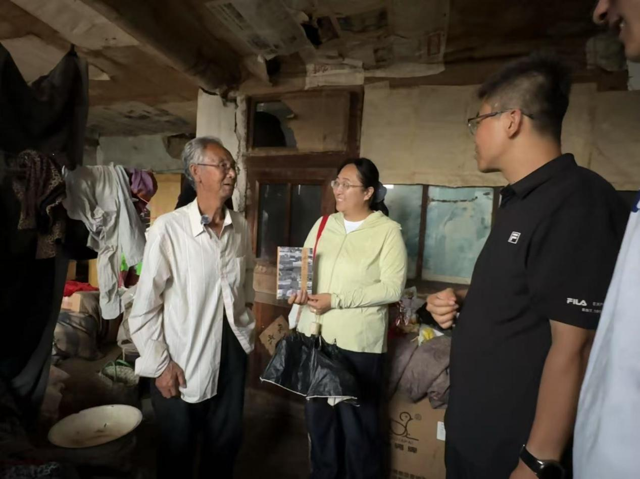 张宏世老人用朴实的语言,还原了那段“一张铁锹两只手,一把黄土栽成林”的艰苦岁月。两校学子用心感受来自老党员的精神力量。来到张宏世老人家中,我们发现老人家中特别清贫,经询问老人的衣服也是穿的别人不要的衣服,看到两校学子前来探望,他非常高兴,与实践队员侃侃而谈,诉说着当时植树造林的历史。