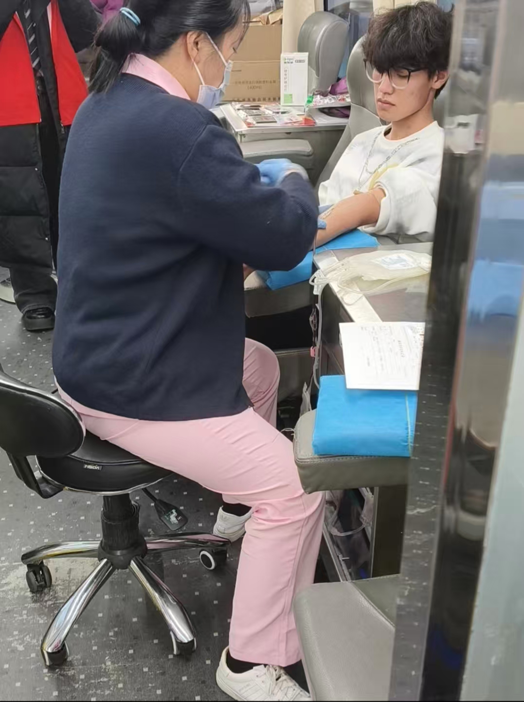活动现场,尽管气温低下,但是同学们却因为“互助,友爱”志愿精神的驱动,参与热情丝毫未减。报名区,志愿者们细致核对献血者信息,引导大家完成填表、体检等流程;采血车里,医护人员严格遵循操作规范,为每一位献血者进行血液采集,同时贴心地准备了饼干与热水以及一系列的纪念品,每一个环节中都闪耀着互助友爱的光芒。这次的活动既展现出了生命的续航能量,也体现了我院学子践行无偿献血凝大爱,奉献爱心显文明和以志愿力量共建美好社会的青春风采。