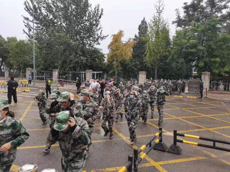 下午14:30,警报声响起,应急疏散演练活动正式开始。全体学生分别从1号、2号、3号和4号学生公寓楼按照既定路线快速有序地撤离到指定应急避难场所(体育场),整个疏散过程用时11分28秒,全部安全有序撤离完毕,达到了预期效果。