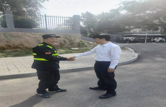 9月29日上午,学院党委委员、副院长原超代表学院到一线执勤岗点看望慰问坚守岗位的安保人员,为他们送上节日的祝福。