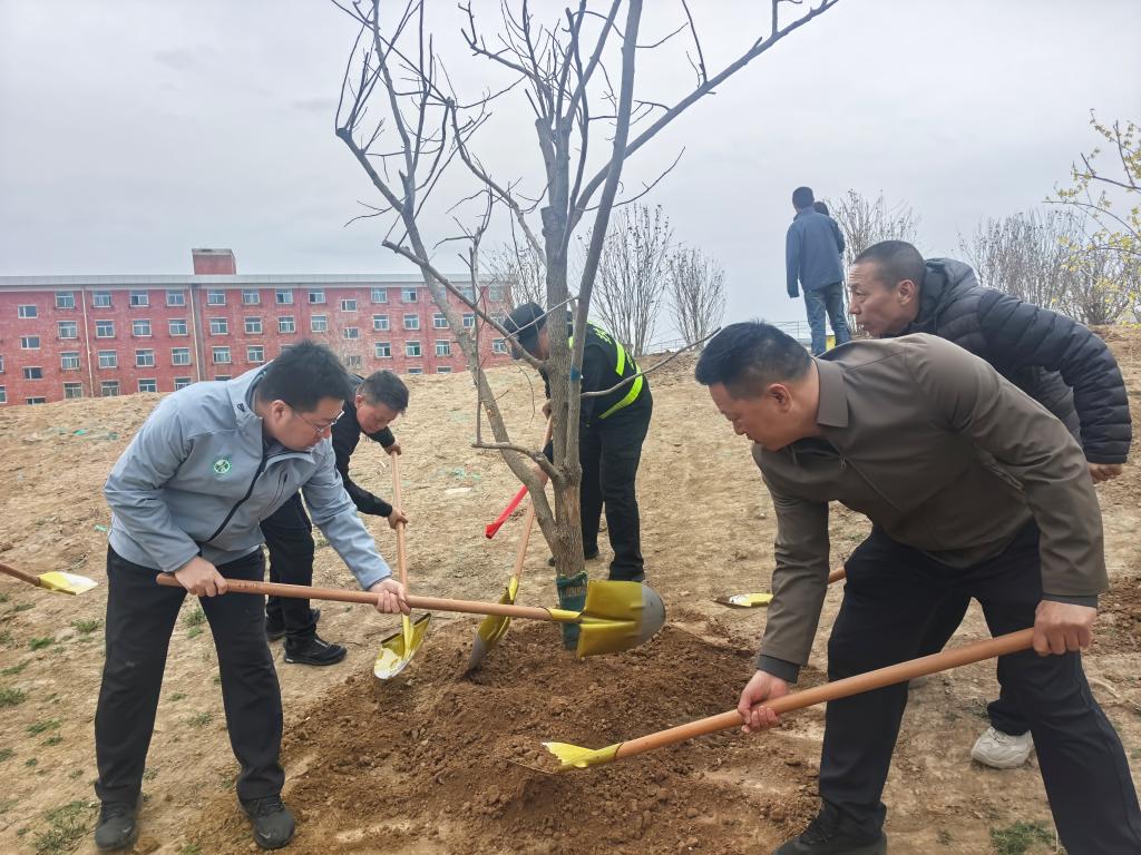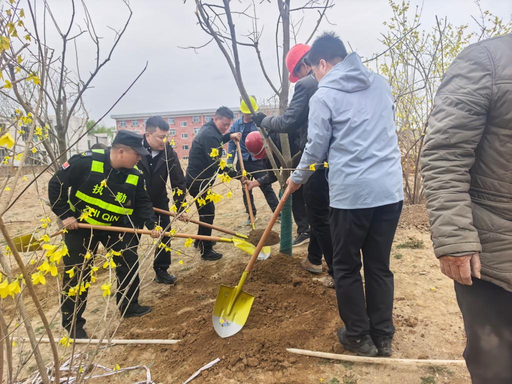 在专业绿化工作人员的指导下,党员们分工协作、默契配合,有条不紊,干劲十足,一棵棵代表着平安与吉祥的柿子树、石榴树迎风挺立,焕发出勃勃生机。