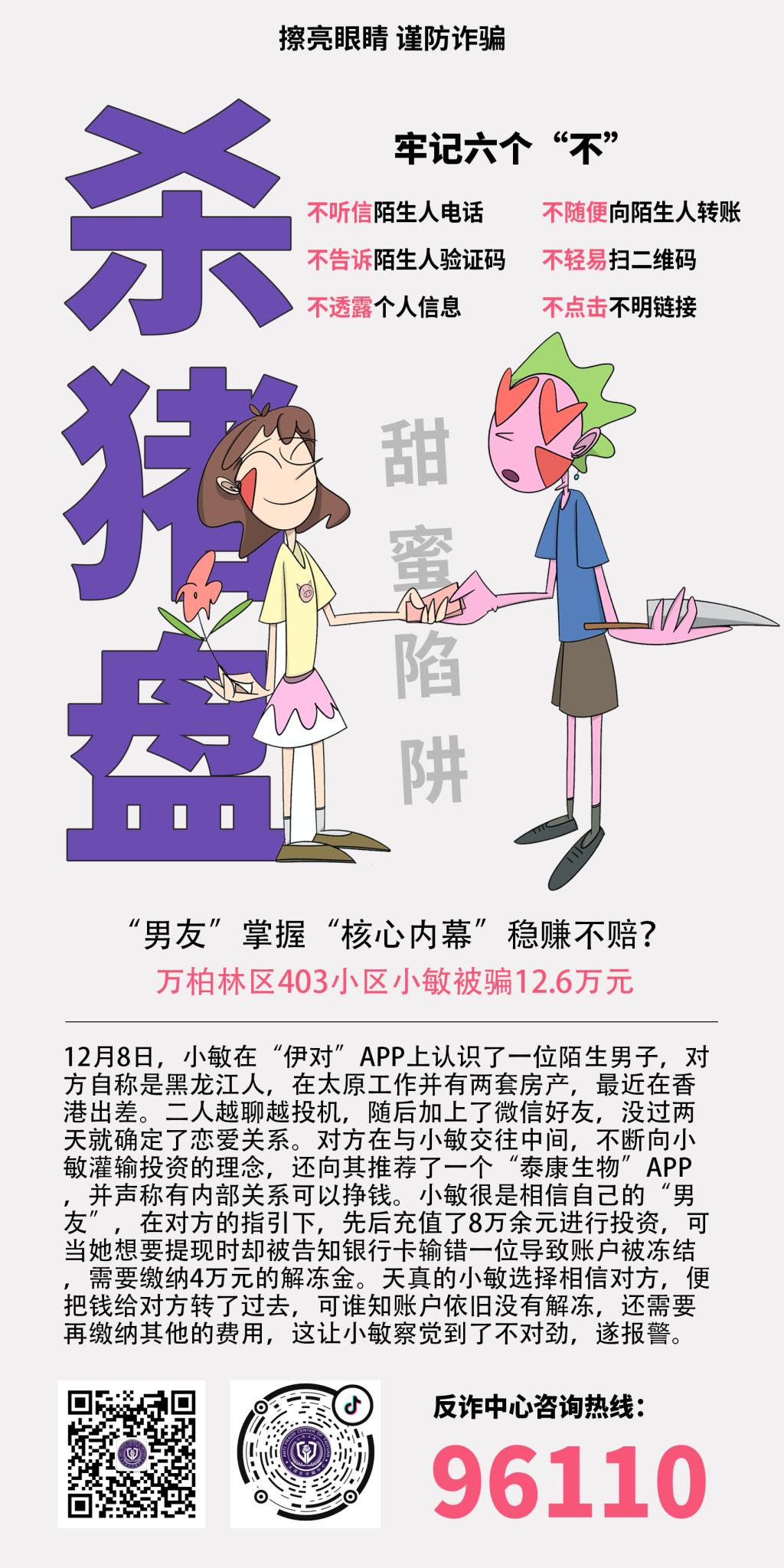 “男友”掌握“核心内幕”稳赚不赔?---万柏林区403小区小敏被骗12.6万元