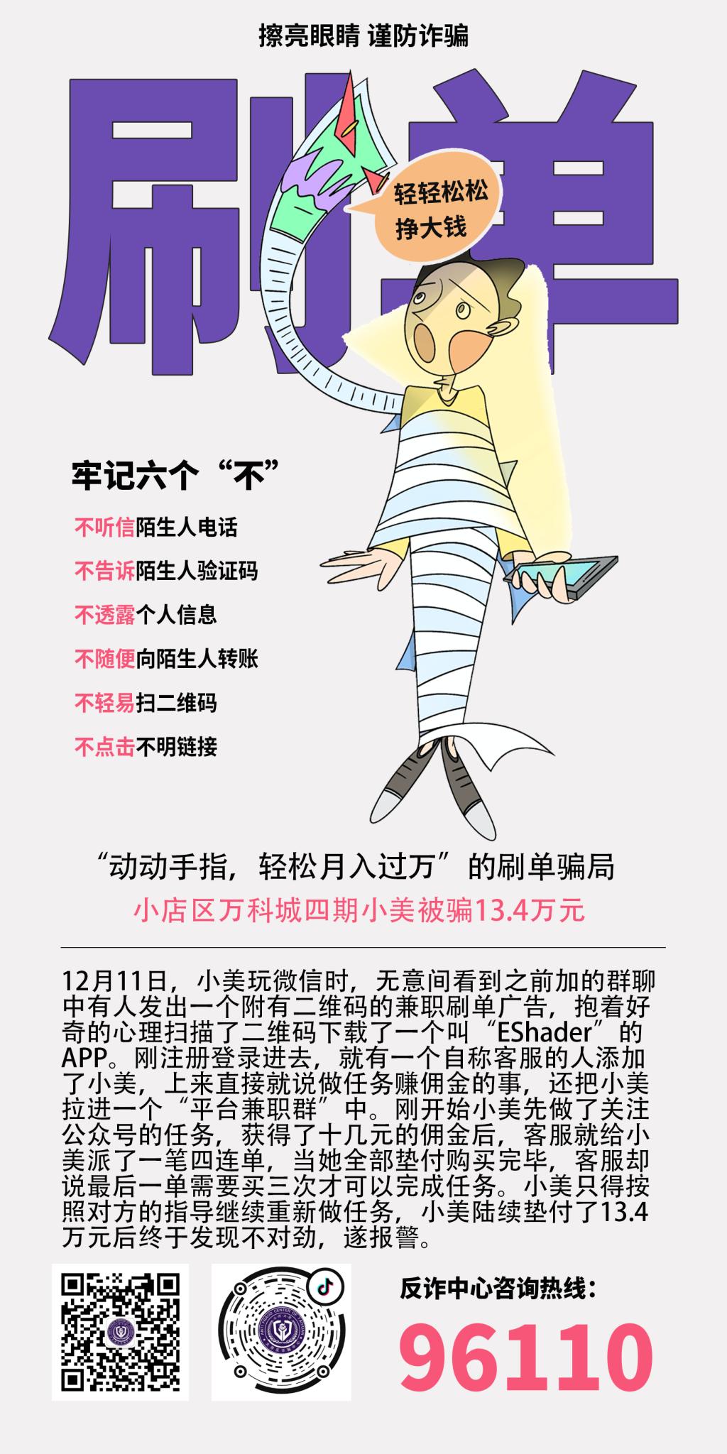 "动动手指 轻松月入过万“的刷单骗局---小店区万科城小美被骗13.4万元