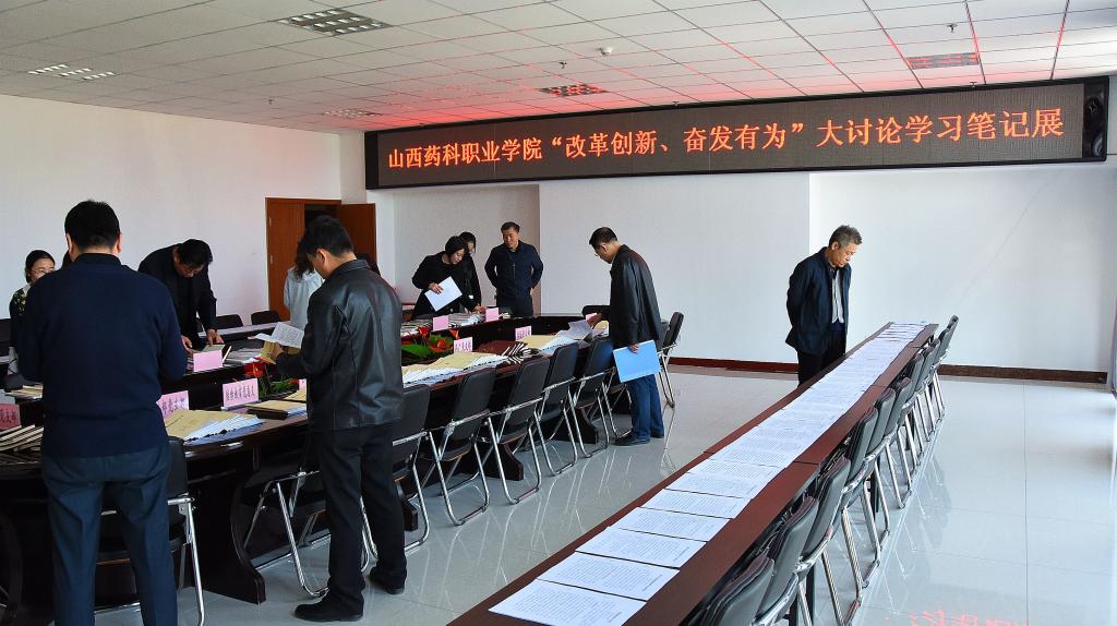 为进一步激发全院教职工学习习近平新时代中国特色社会主义思想的自觉性和积极性,深入开展“改革创新、奋发有为”大讨论,2019年4月11日至12日,山西药科职业学院在综合楼523会议室举办了“改革创新、奋发有为”大讨论学习笔记展览活动。学院领导莅临指导,各党总支、直属党支部党员代表参加了观展。