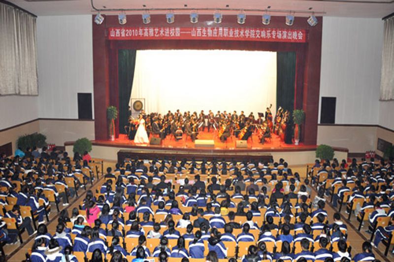 踏着深秋的瑟瑟韵律,沐浴着高雅艺术的浓浓气息,山西省2010年高雅艺术进校园----交响乐专场演出于10月28日晚在我院大礼堂隆重举行。省教育厅体卫处原处长王德科,山西艺术职业学院副院长单红龙,学院党委副书记、院长李华荣,党委副书记、纪委书记龚晋文,党委委员、副院长胡尔雅出席演出活动。全院一千多名师生观看了演出。