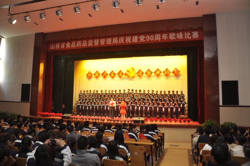 为庆祝中国共产党成立90周年,歌颂党的丰功伟绩,弘扬党的优良传统和作风,展示省食品药品监督管理干部昂扬向上、团结一心的精神风貌,促进创先争优活动的深入开展,4月19日下午,山西省食品药品监督管理局在我院大礼堂隆重举行了庆祝建党90周年歌咏比赛。