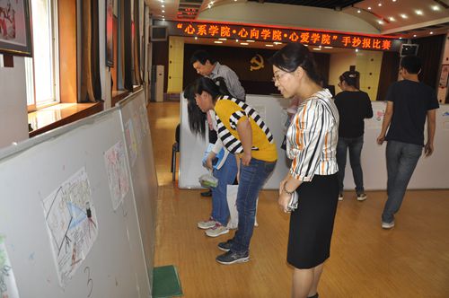 5月19日上午,宣传统战部部长陕荣善会同院工会会、思政部等部门负责同志作为评委参与了由国际合作教育中心承办的在文体活动中心展出的“心想学院、心向学院、心爱学院”学生手抄报作品展览评选,为各系选拔的40余幅手抄报打分。
