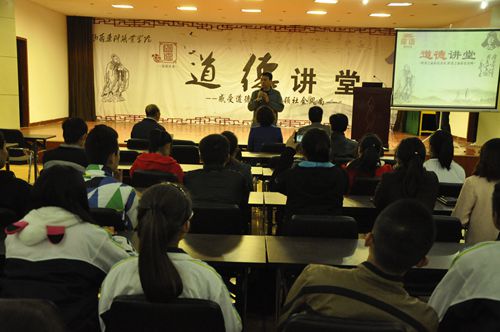 本次道德讲堂由唱一首道德歌曲、诵一段经典名言、讲一个道德事迹、发一段心灵感悟、送一点吉祥祝福和听一个主题讲座环节等6个环节组成,现场座无虚席,师生们在这“六个一”中共同感受着道德的力量。