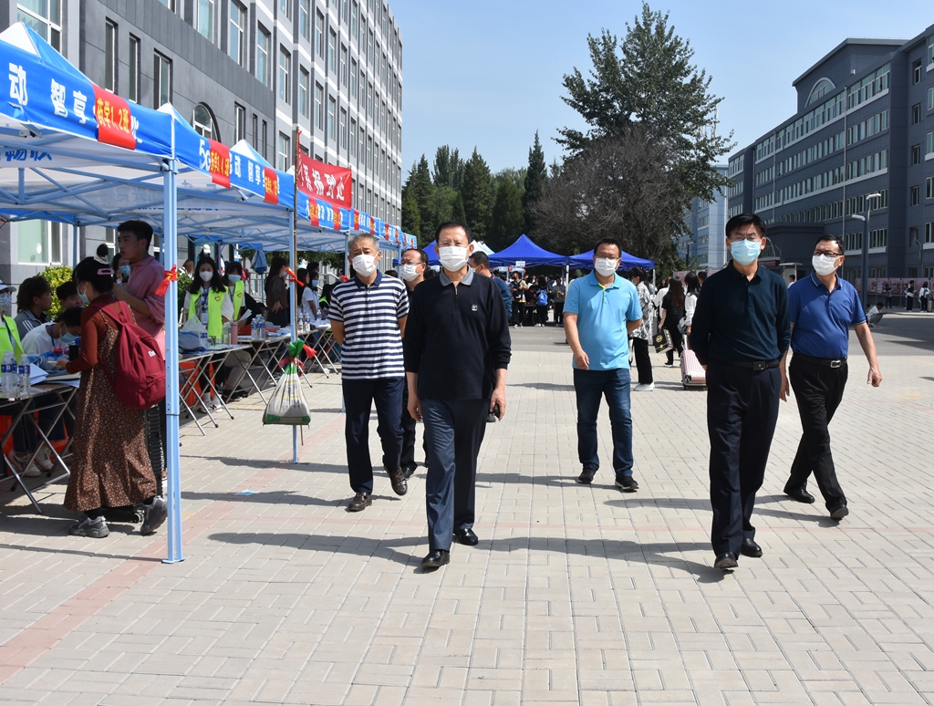 学院领导张瑞芳、张震云、邹本贵、沈宝荣、陕荣善一行来到迎新现场,慰问迎新工作人员和志愿者,检查迎新各项工作,详细了解迎新工作安排和新生报到情况,要求各部门、单位要在抓好疫情防控的基础上,提供周到细致的服务,为学生入学提供方便。