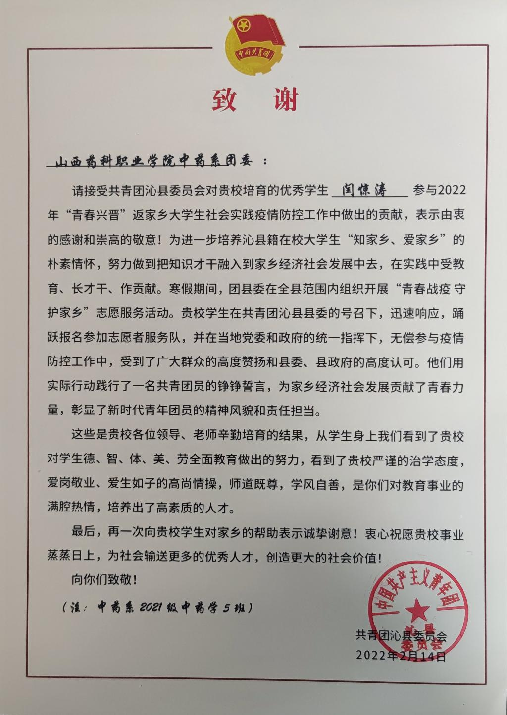 感谢有你,在这座城市里;感谢有你,守护在寒冬里。这个假期,中药系的学子用实际行动践行了“奉献、友爱、互助、进步”的志愿服务精神,用出色的表现印证了建党百年之际青年一代的铮铮誓言:“请党放心,强国有我”。正是在党的号召下,在抗“疫”英雄的感召下,我们的青年学子表现出了新时代青年良好的精神风貌和无私无畏的优秀品质,他们誓以青春力量,护佑山河无恙!我们相信,有党中央的坚强领导,有全国人民的风雨共济,有我们青年一代的责任与担当,疫情终究会过去,迎接我们的一定是美好的春天。