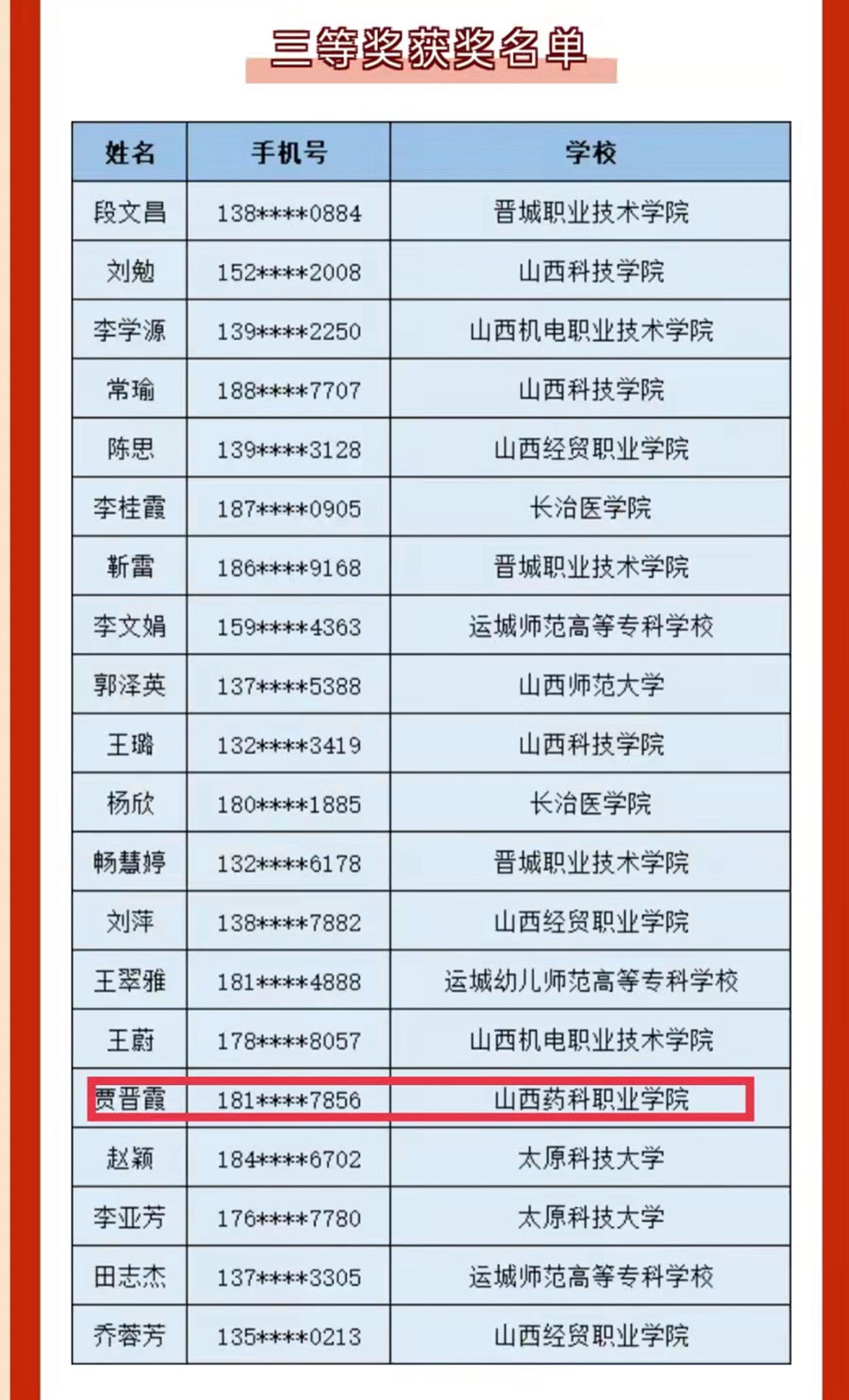 近日,由山西省高校思想政治教育研究会主办,山西农业大学马克思主义学院承办,中科软股教育科技(北京)股份有限公司协办的山西省中科杯“喜迎二十大·青春逢盛世·奋斗正当时”主题教育活动圆满落幕。我院师生积极参与,在活动中斩获佳绩。其中,思政部贾晋霞老师荣获教工组三等奖;思政部常宇、吴若男、弓宇琛、陈琪、药飞飞老师,药学系王小露老师,办公室杨小莉老师荣获教工组优秀奖。学院荣获团体奖优秀组织奖。