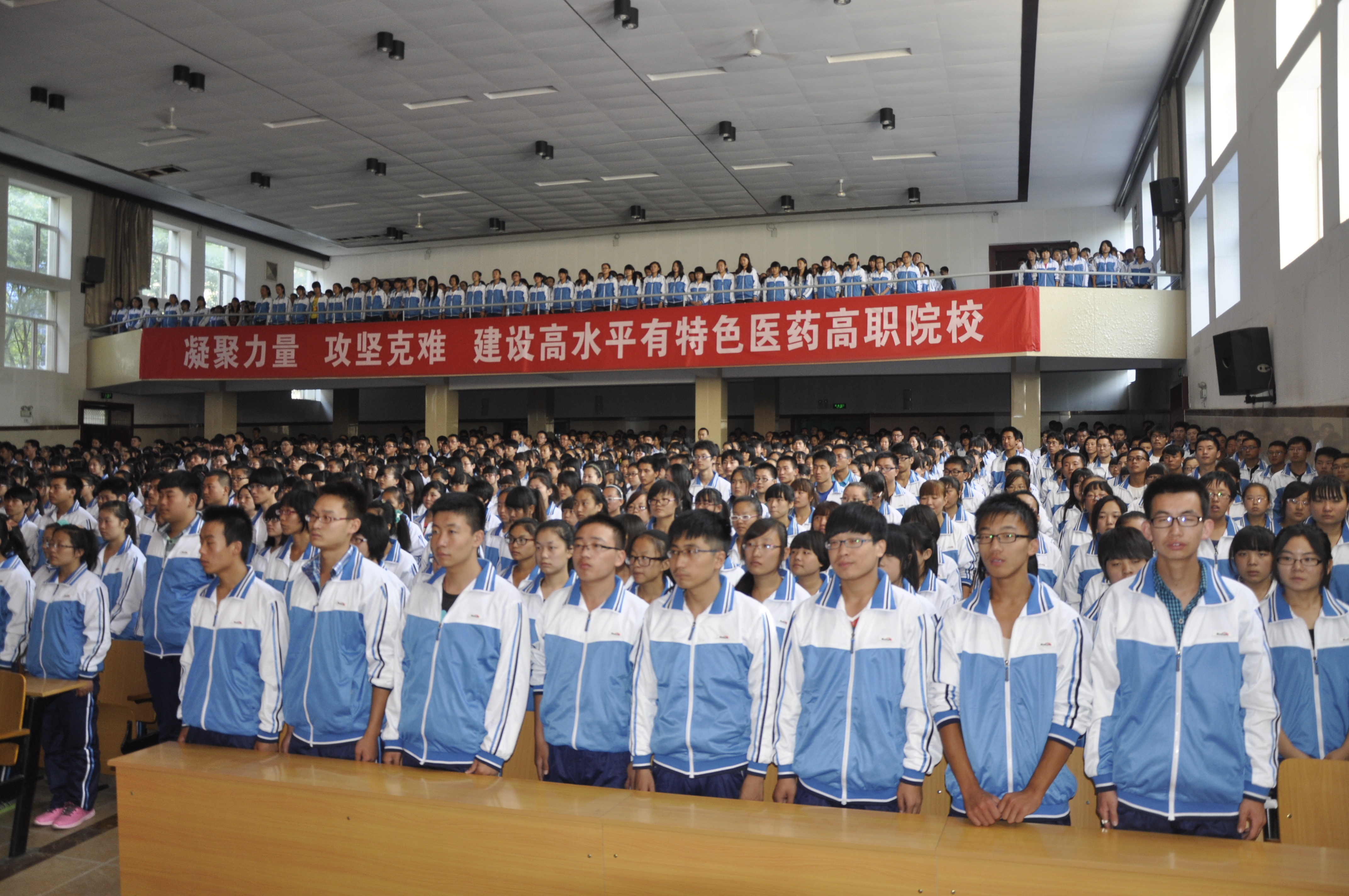李华荣院长代表学院党政领导和全体教职员工,对2013级新生的到来表示热烈欢迎。他首先简要介绍了学院的光辉历史和一年来所取得的标志性新成果。随后,围绕陶行知先生“千教万教教人求真,千学万学学做真人”的教育箴言,结合医药高职教育特点,向全体新生提出四点建议和希望,一是求真知,透过知识发现意义,透过知识树立价值,透过知识发现真善美;二是学真经,以“惟实”之学风学习自立于社会的技能和本领;三是干正事,确立发展目标,脚踏实地,认真践行;四是做真人,学习“百草”之精神,不屈不挠,不懈奋斗。