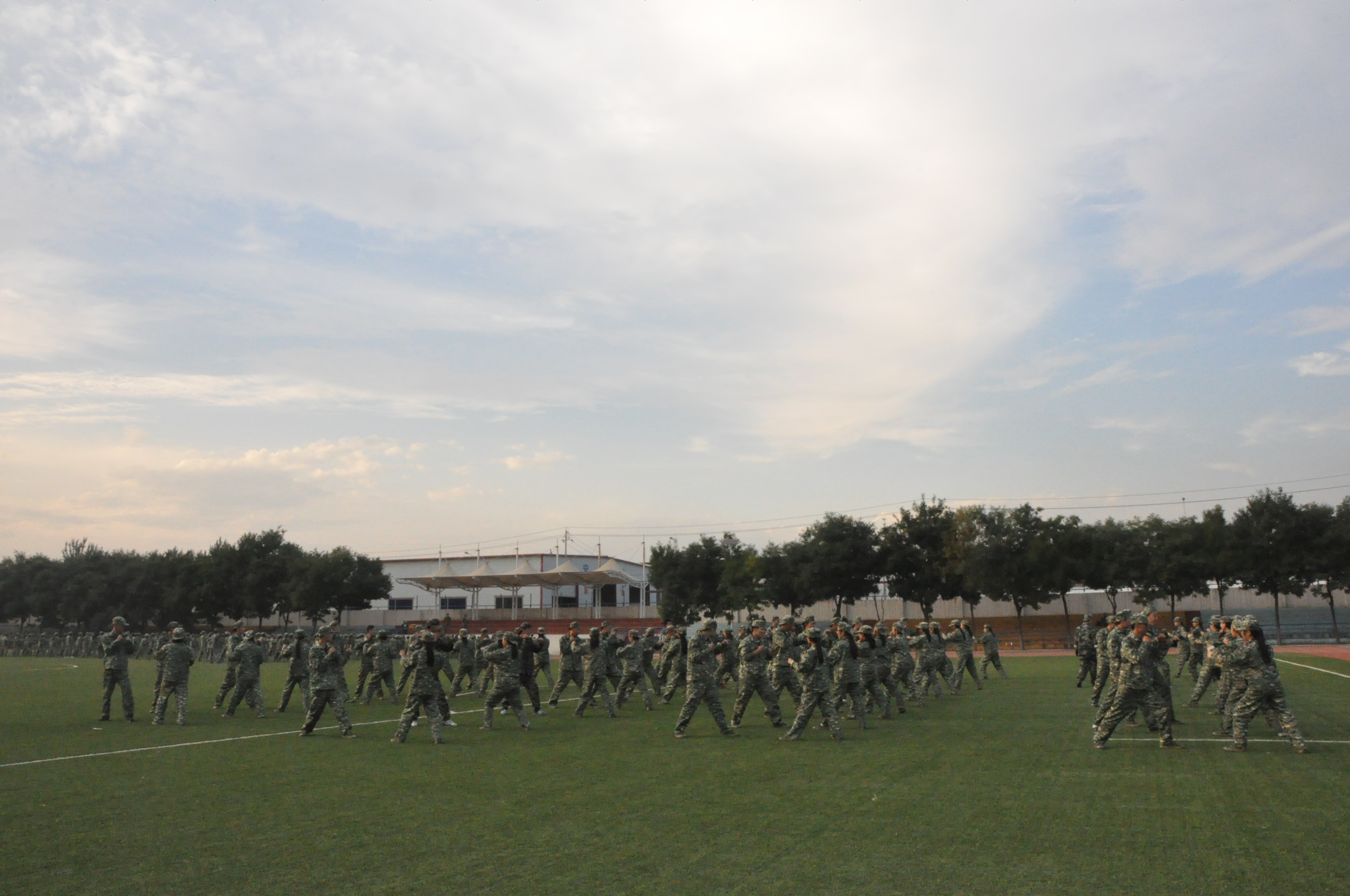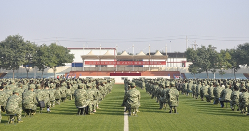 2016年10月10日,学院2016级新生军训动员大会在运动场召开。学院党委委员、副院长胡尔雅同志出席会议,帮训部队——解放军某部军事训练基地军训教官派遣队的官兵及2016级全体新生参加大会。