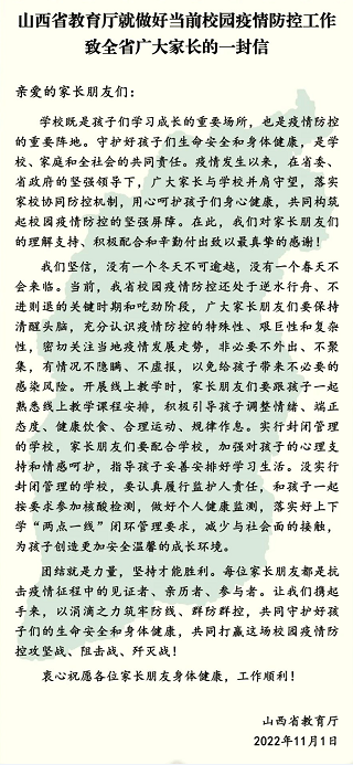 山西省教育厅就做好当前校园疫情防控工作致全省广大家长的一封信