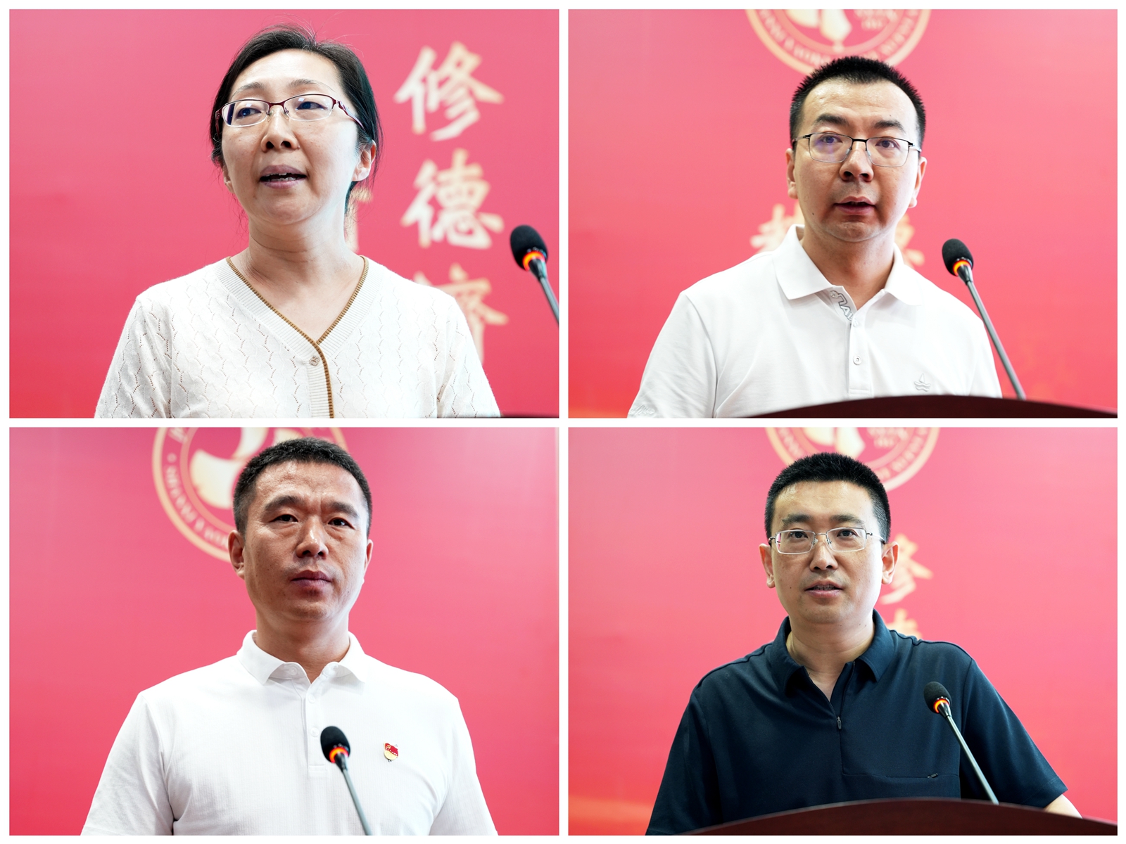 中药系党总支、药学系辅导员代表、体育研究实践工作室、制药系党总支分别汇报了第二课堂工作和第三课堂实践活动的开展情况、特色成果及相关经验;6名学生代表分享了个人在第二、三课堂活动中的收获与感悟。