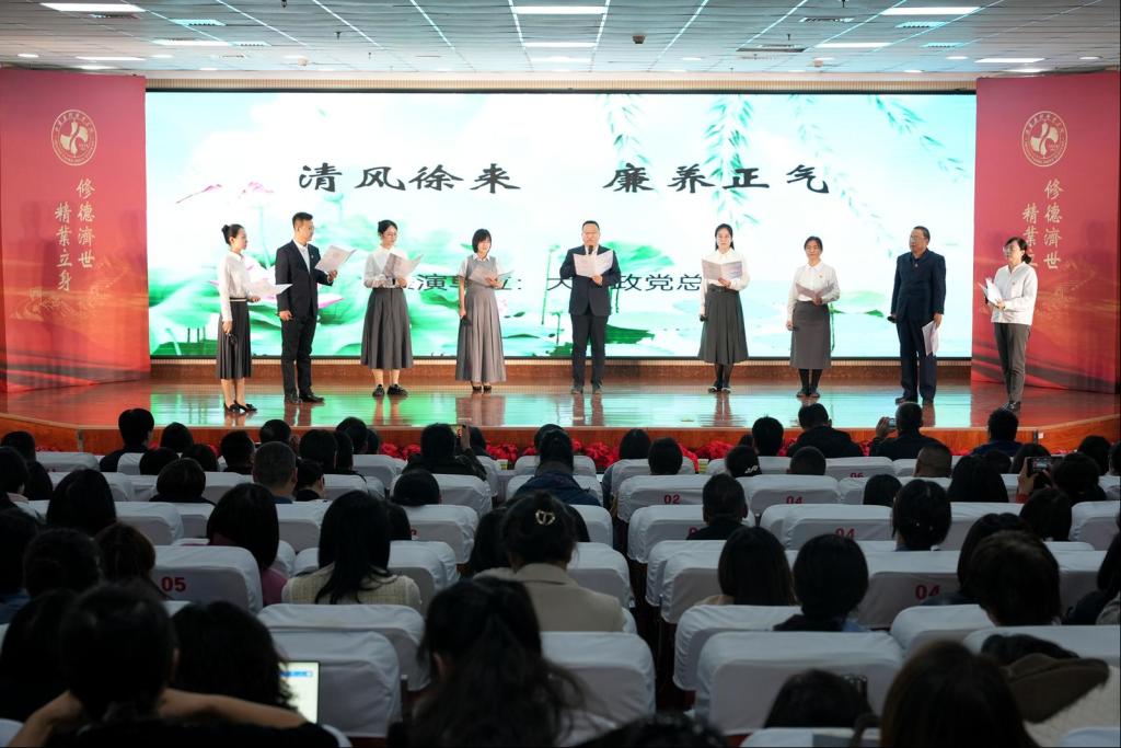 清风扬正气,廉韵润校园。为大力营造清明校风、清正教风、清新学风、清廉作风的浓郁氛围,引导广大教职工从思想上固本培元,筑牢思想道德防线。11月6日下午,学院第八届“清风药科 廉韵润心”廉洁文化教育活动月系列活动之一“清风话廉”教职工诗文朗诵大赛在学院综合楼报告厅举办,学院领导王旭、庄东军、刘志伟、原超和教职工共350余人参加。