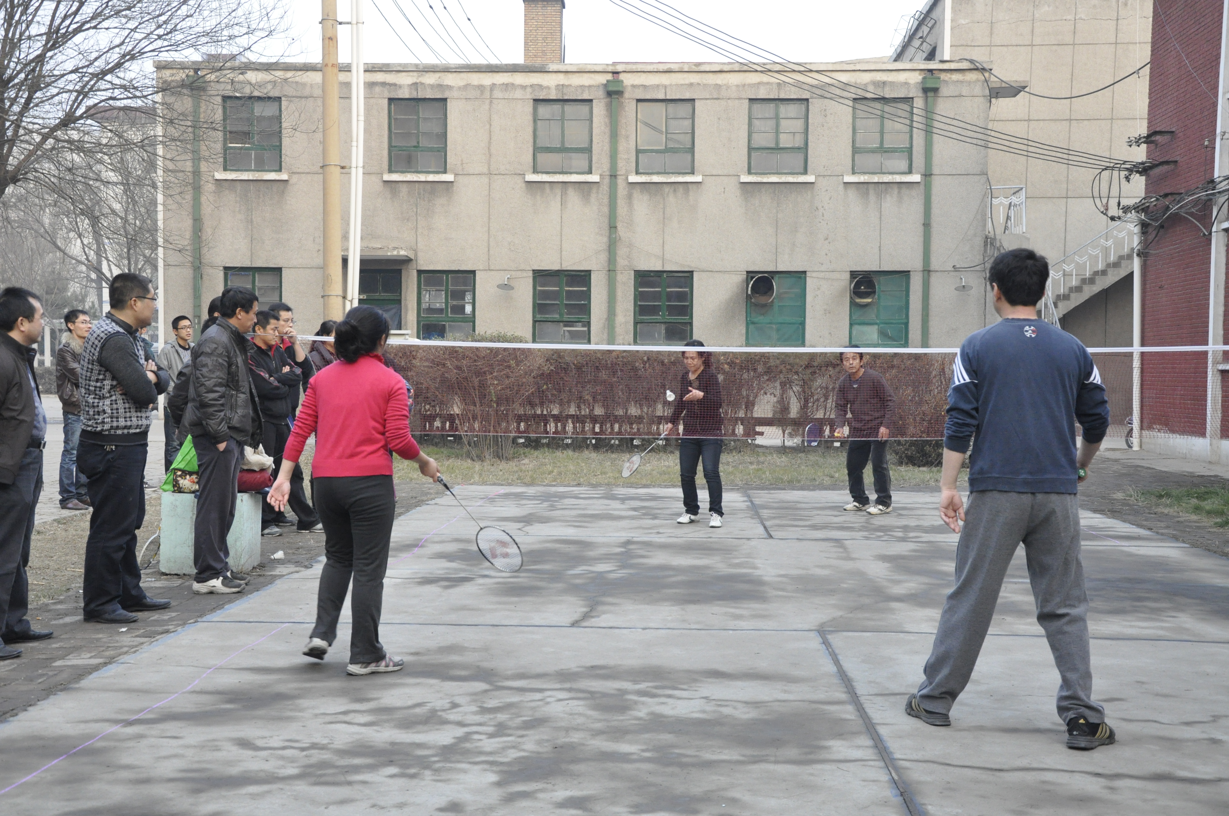 2012年11月21日,学院2012教职工羽毛球比赛共进行了四场比赛。分别是后勤对阵思政,药厂对阵基础三,工商对阵教辅,基础一对阵基础四。比赛颇为激烈,最终获胜队为后勤、基础三、教辅、基础四。