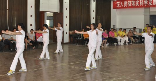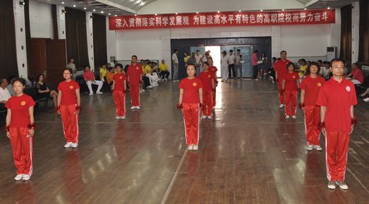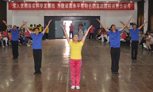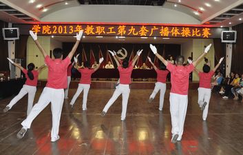 6月3日下午,由院工会组织的教职工第九套广播体操比赛在文体活动中心举行。院党委书记张瑞芳、副书记尹士优、纪委书记王家政、副院长胡尔雅、张震云和邹本贵观看比赛。