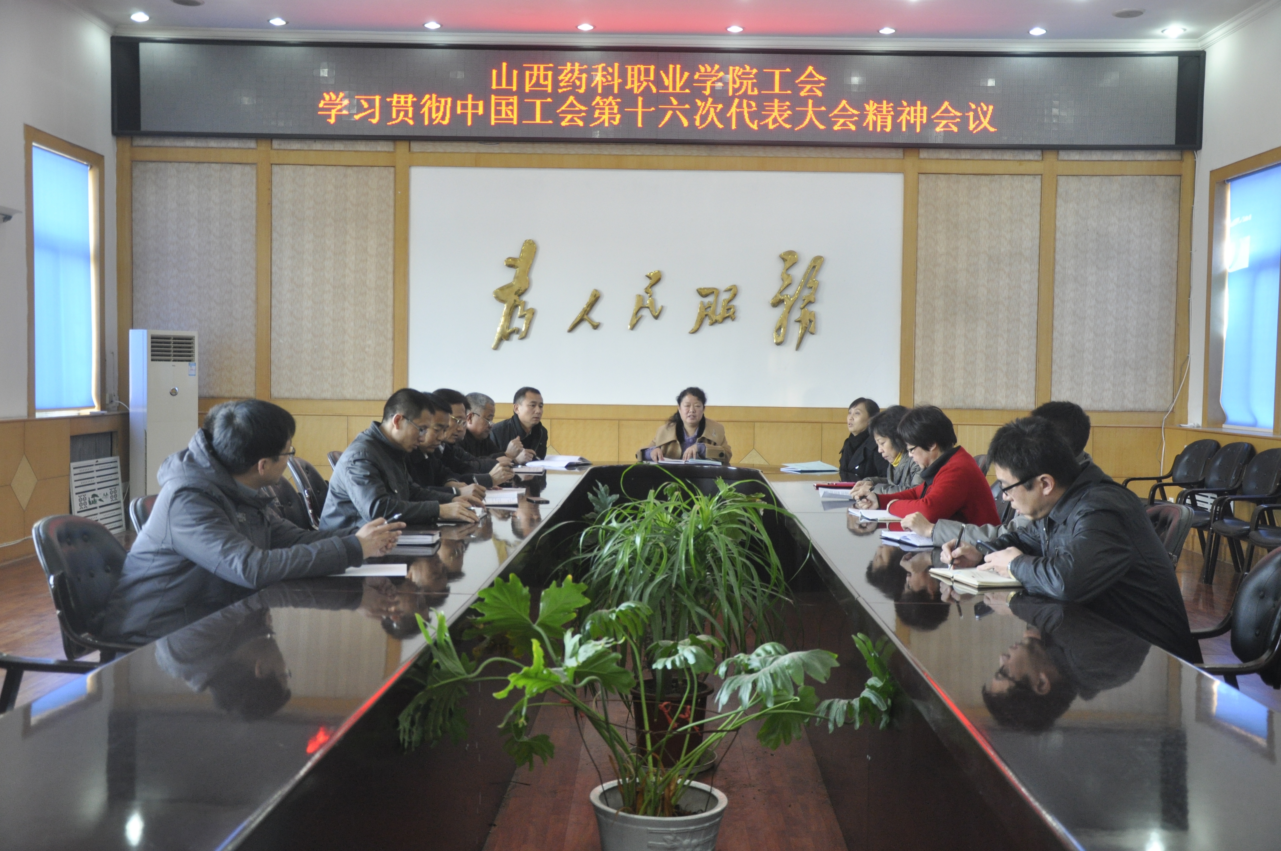 11月18日,院工会在办公楼二楼大会议室召开工会干部会议,集中传达学习全国总工会十六大精神和习近平总书记与全总新一届领导班子成员集体谈话时的重要讲话精神,就学院工会下一阶段工作作了布置。会议由工会主席吴虹同志主持。