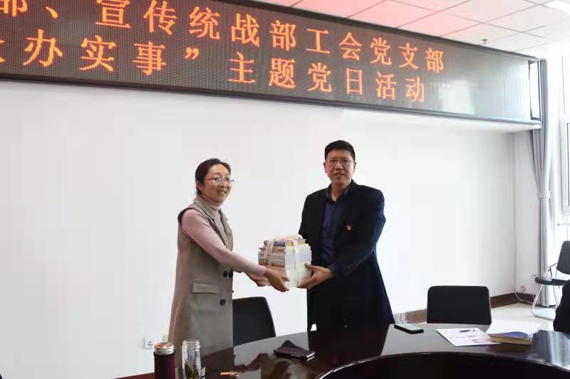 活动中,全体思政课教师就学院思政课建设工作进行了研讨,并就如何做好学习宣传贯彻党的十九届六中全会精神作了交流。宣传统战部工会党支部全体党员向学院思政图书室捐赠哲学、政治、经济类图书15册,作为理论学习、形势政策教育的辅助材料,用于思政教师开展思想政治理论课教学和大学生日常思想政治教育活动。