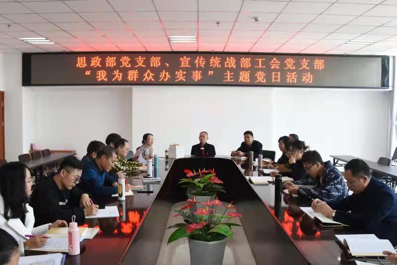 11月17日下午,思政部党支部、宣传统战部工会党支部在523会议室联合举行了“我为群众办实事”主题党日活动。思政部、宣传统战部工会党支部全体党员和思政部教师参加了活动。