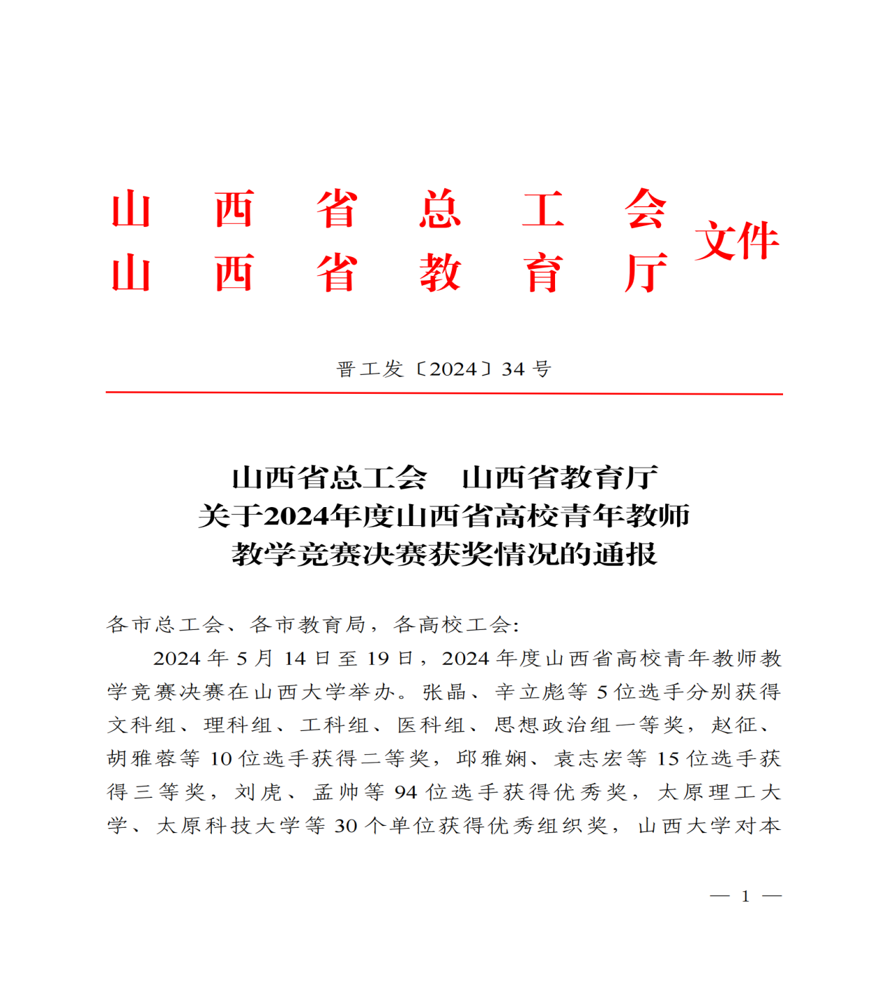 8月底,山西省总工会与山西省教育厅共同发布《关于2024年度山西省高校青年教师教学竞赛决赛获奖情况的通报》,山西药科职业学院荣获优秀组织奖。