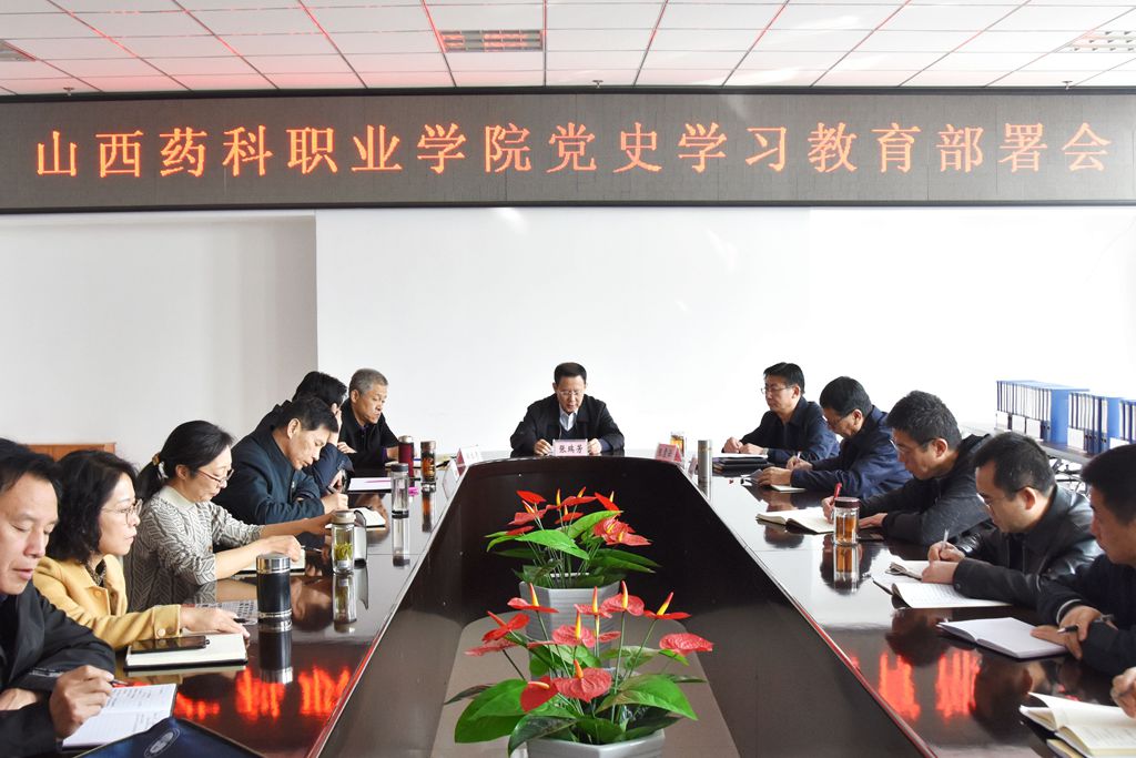 张瑞芳从“提高政治站位,深刻理解‘为何学’,充分认识党史学习教育的重要性”“明确目标要求,精准把‘学什么’,切实加强开展党史学习教育的针对性”“突出学习重点,谋划好‘怎么学’,努力提高开展党史学习教育的有效性”“加强组织领导,狠抓工作落实,确保党史学习教育顺利开展”四个方面对党史学习教育进行了部署。他强调,开展党史学习教育,是用习近平新时代中国特色社会主义思想武装头脑的重大举措,是推进党的建设伟大工程的迫切需要,是建立“不忘初心、牢记使命”常态化学习制度的生动实践,是转型发展蹚新路、实现学院高质量发展的必然要求。全体广大党员干部尤其是副处级以上领导干部要深刻认识党史学习教育的重要意义,切实把思想和行动统一到习近平总书记重要讲话精神上来,统一到中央、省委以及省委教育工委的部署要求上来,在对党史的学思践悟中不断增强“四个意识”、坚定“四个自信”、做到“两个”维护,以更加昂扬的精神状态投身学院建设发展新征程。