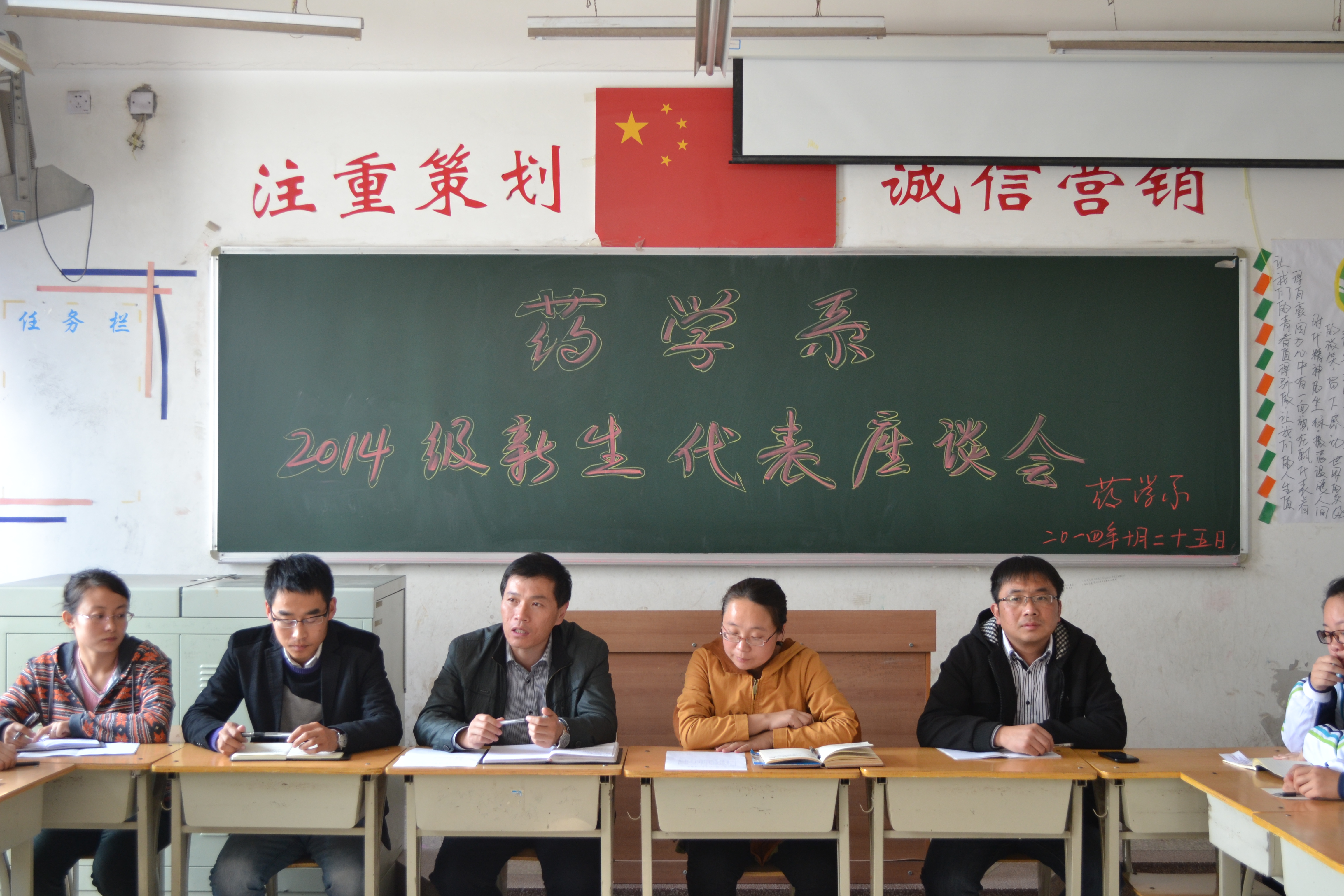 10月25日下午,药学系党总支在东教学楼301教室召开2014级新生代表座谈会,药学系党总支书记高建军、分团委书记马明星以及学生党支部全体党员出席座谈会,药学系2014级新生代表参加了座谈会。