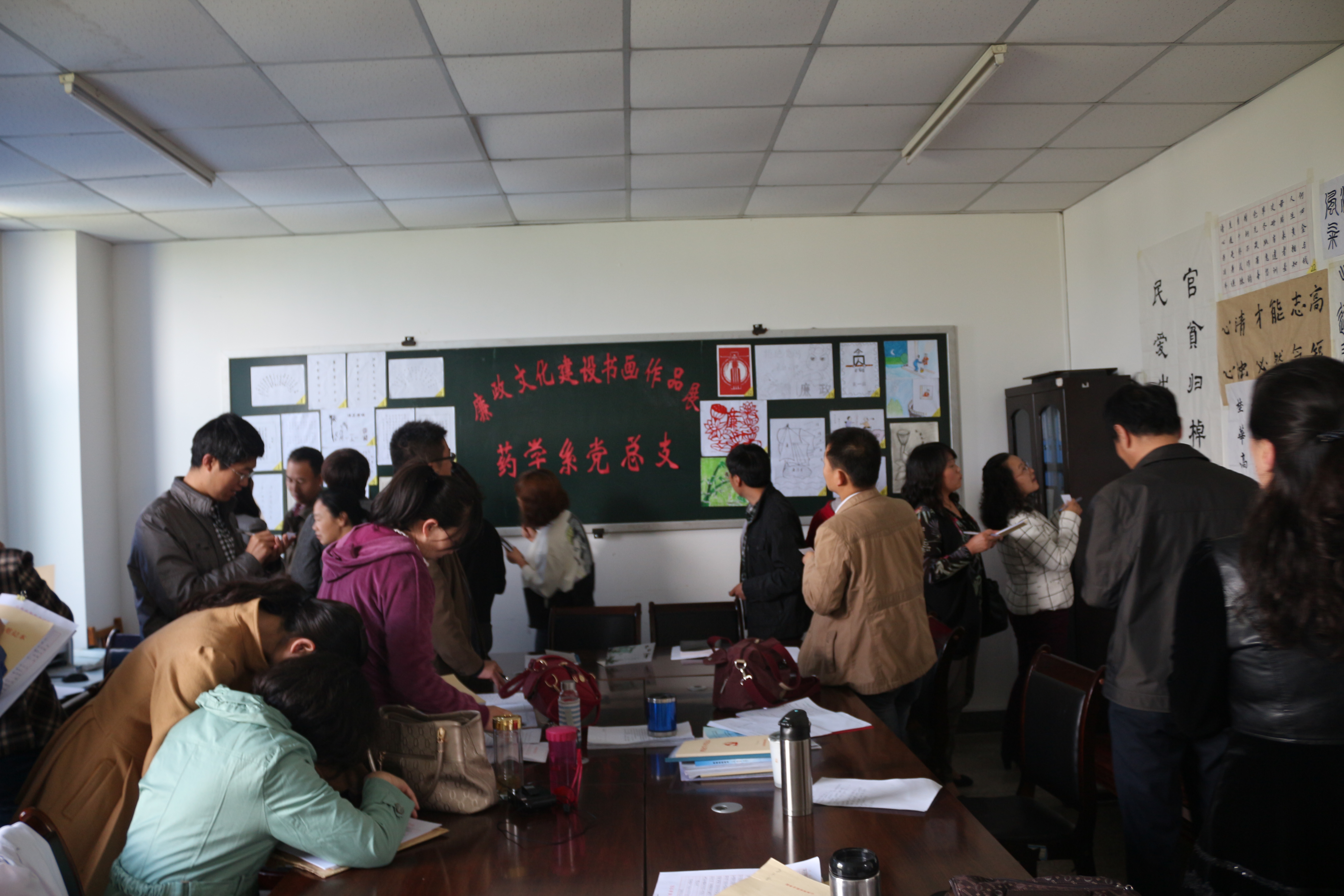 为进一步弘扬校园廉政文化,积极营造讲廉洁、讲正气的社会风尚和廉洁文化氛围,5月11日下午,药学系党总支在系会议室举办了“廉政文化建设”书画作品展评活动。学院纪检监察室主任杨宏、纪检监察室办公室主任魏永鹏亲临现场并给予指导。