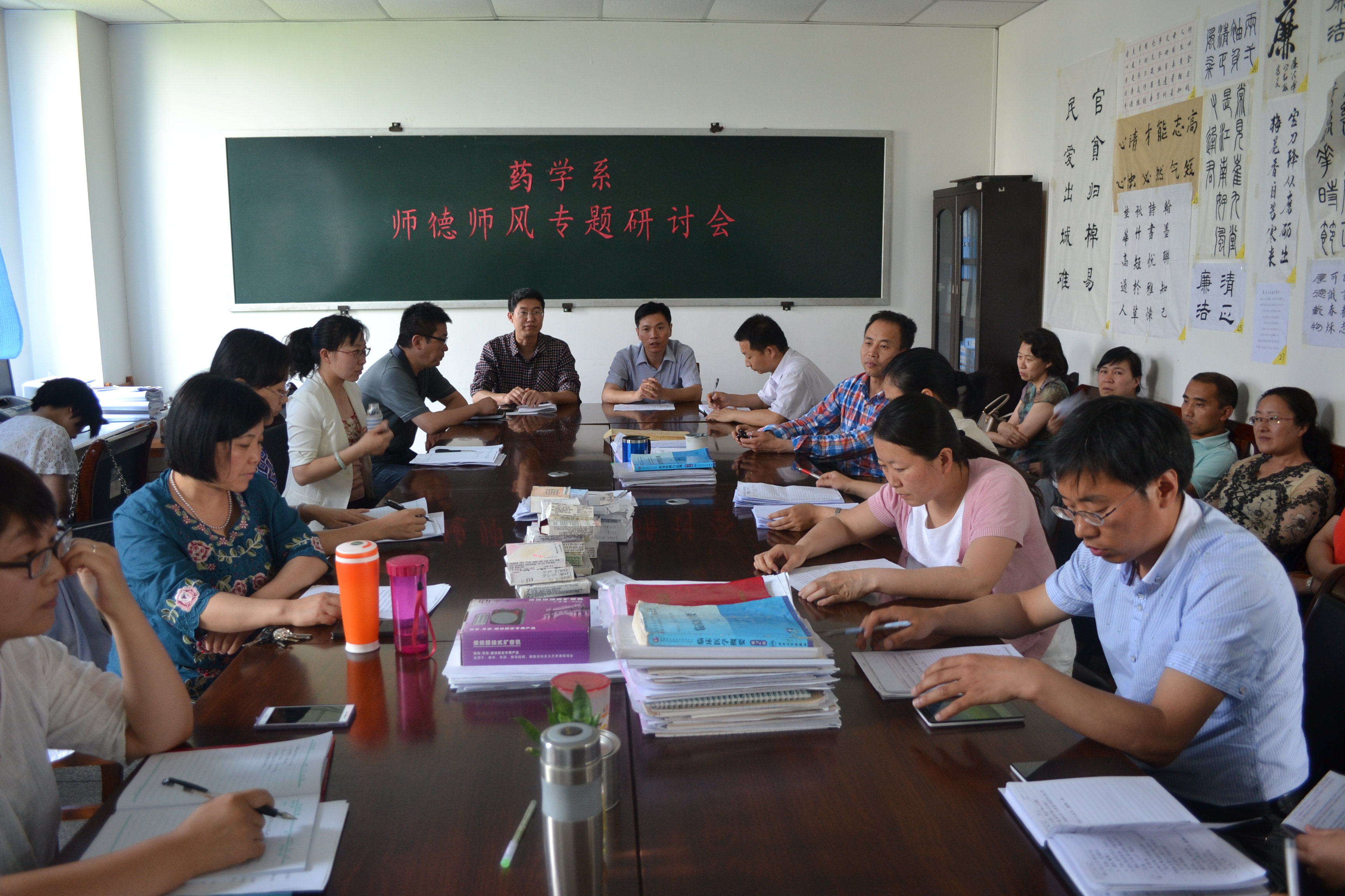 为贯彻落实省教育厅“关于开展师德师风建设专项整治工作”会议精神和学院“关于师德师风建设专项整治推进会”精神,加强我系教师师德师风建设,5月27日,药学系举行了师德师风建设专题研讨会,药学系全体教师参加了研讨,会议由药学系副主任王祎主持。