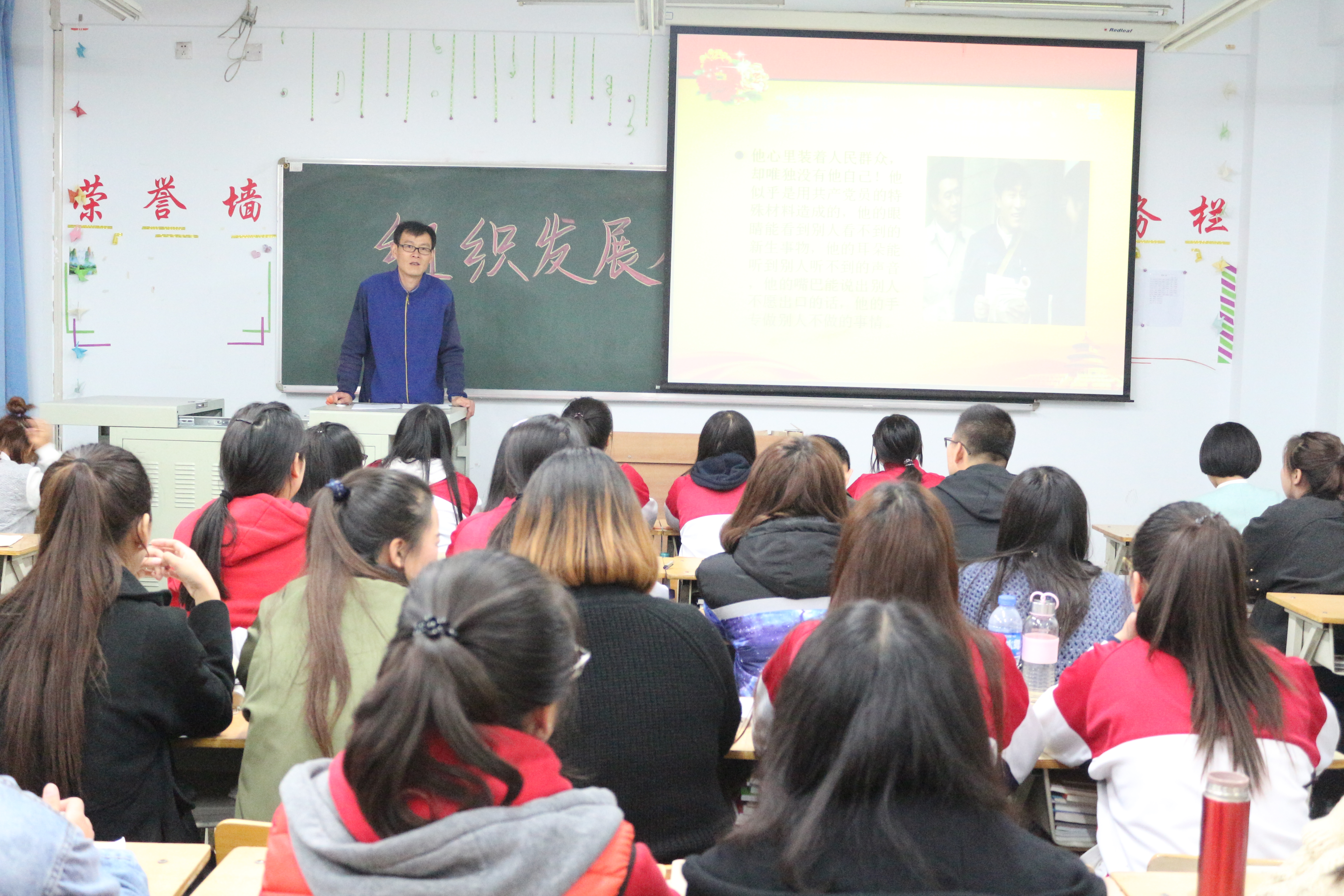 程俊峰详细阐述了发展党员的程序,包括递交入党申请书、培养对象、入党积极分子、发展对象的确立、预备党员的接收、转正、支部大会的召开、考察表的填写等诸多环节,并对学生进行了政治思想教育。