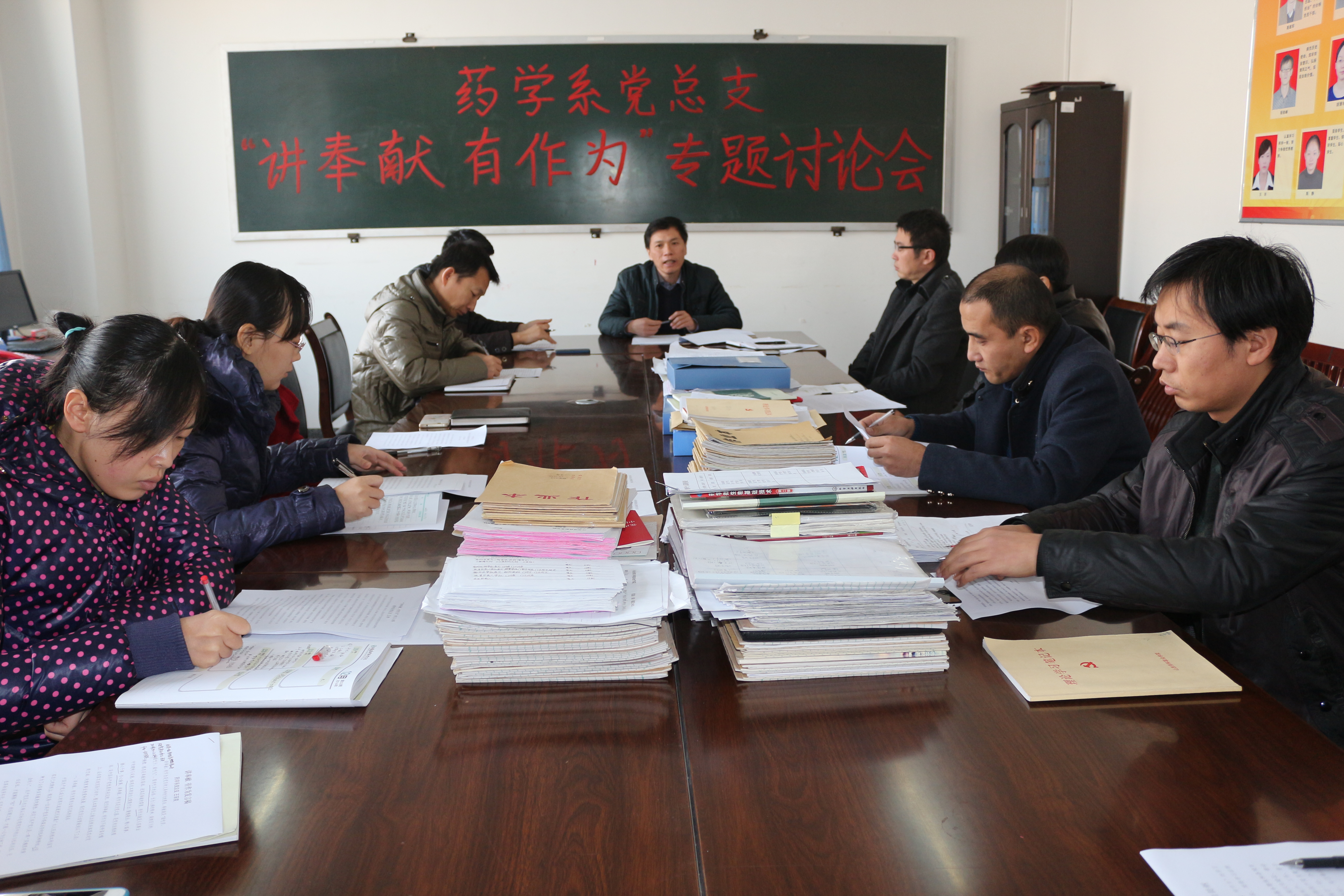 12月17日下午,药学系党总支在系办公室召开“两学一做”学习教育“讲奉献、有作为”专题学习讨论会。系全体党员参加学习讨论。系党总支书记高建军主持讨论会。