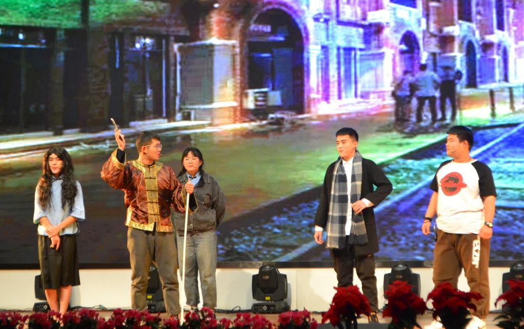 首先,开场舞《like it》以精湛的舞艺和火热的氛围点燃了晚会的第一个高潮,拉开了晚会的序幕。本次晚会内容丰富,形式多样,令人应接不暇。上半场有美妙的歌曲《七里香》,空灵悠远的吉他独奏《天空之城》,无厘头的小品《甄嬛后传》,优美的音乐剧《后来》,青春动感的舞蹈《致·尚》,曼妙的歌曲与舞蹈《芳华》,爆笑的小品《情深深雨濛濛》。接着,穿插了“你来比划我来猜”、“运送气球”两个游戏环节,邀请台下的师生上台互动比赛,掀起了气氛的又一个高潮。下半场精彩继续,美丽的舞蹈《最炫民族风》,打动人心的歌曲《夜空中最亮的星》,令人捧腹的小品《爆笑招聘》,温情的歌曲《那些年》,青春洋溢的舞蹈串烧,最后以分团委、学生会干部的创意走秀《期待明天》落下帷幕。