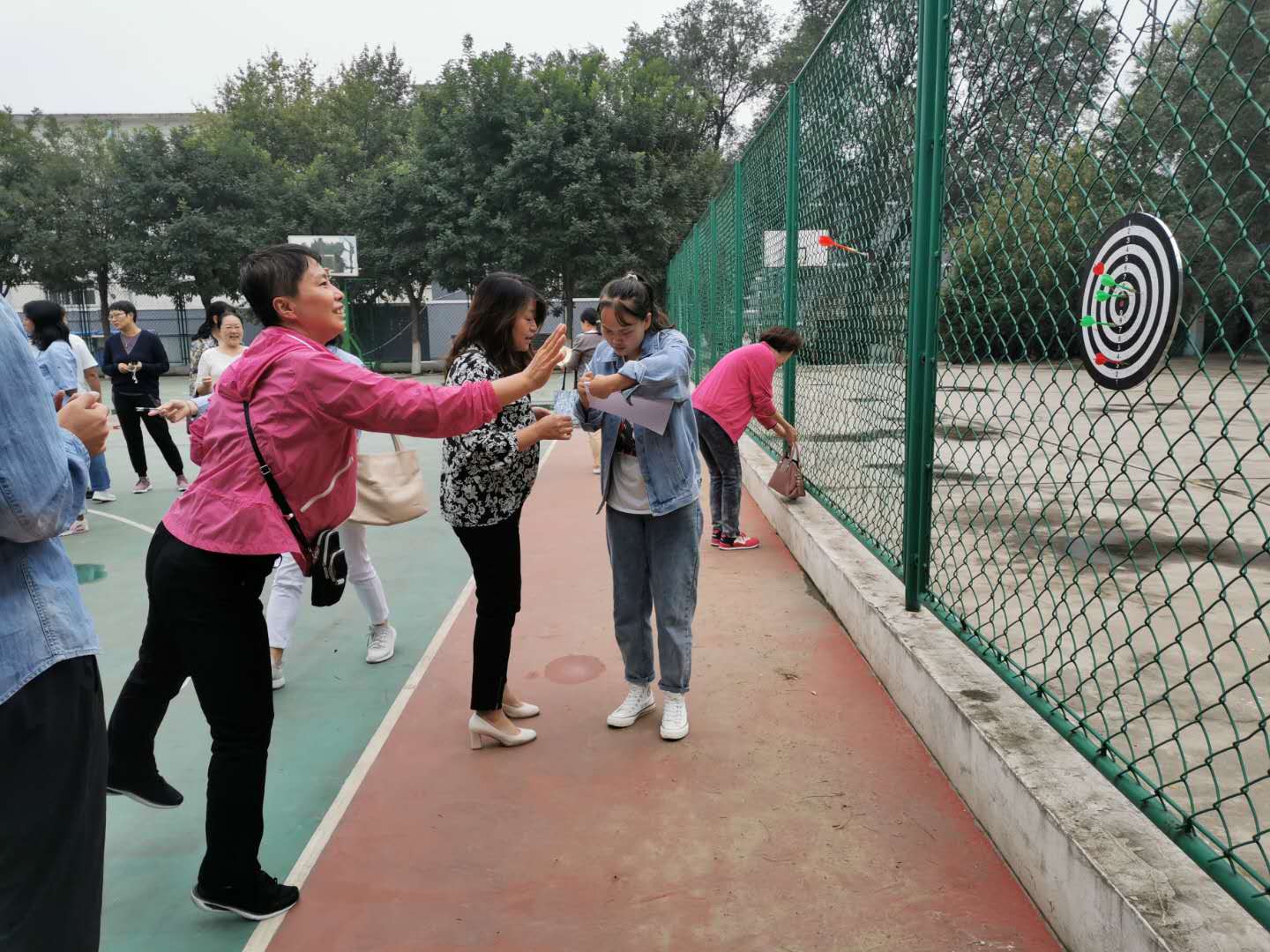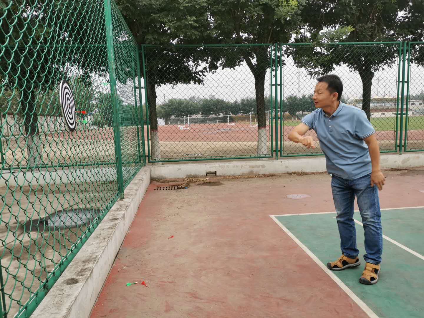 此次活动分为投飞镖和定点投篮两个项目,全体教职工到场后,随即进入激烈的比赛环节,一个个摩拳擦掌,干劲十足。飞镖投掷现场热闹非凡,每人投射六支飞镖,按累积得分,比赛过程中老师们互相探讨投飞镖的诀窍,赛场中不时传出投掷高分的喝彩声和脱靶的笑声。投掷完毕老师们小跑至下一个项目——定点投篮,此项目有六次投篮机会,记录进球数目,老师们连续轻松投进、高分不断,篮球场上热情洋溢,热闹异常。
