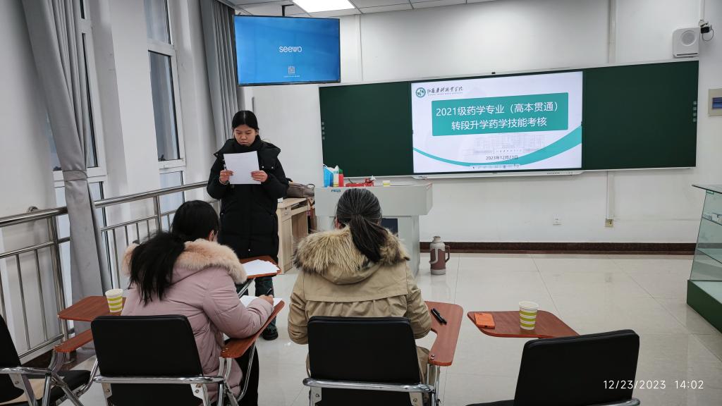 2023年12月23日,我院和长治医学院共同组织了2021级药学专业(高本贯通)学生的转段升学考核,包括转段提升课程、药学技能和校外综合实训等考核项目。考场设在我院阶梯教室和百草大药房,考核全程录音录像,57名高本贯通药学专业学生通过了转段升学考核。