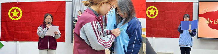 活动第一项 佩戴团徽,主持人宣读新团员名单,由老团员代表为新团员佩戴团徽。这一刻,不仅是身份的象征,更是使命与责任的传承,让每一位团员深刻感受到身为共青团员的神圣与庄严,让每一位团员铭记自我身份与职责,牢记初心与使命。崭新的团徽,自信的微笑,青春向党,逐梦前行。