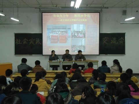 为进一步激发同学们积极服务社会发展,在实践中了解国情,磨炼意志,提升技能,奉献社会。2012年11月5日下午,药学系分团委组织开展了“2012年暑期社会实践经验交流会”。院团委副书记付平应邀出席了会议,系党总支书记高建军、副书记韩晋平、辅导员张艳艳以及一、二年级学生代表参会,会议由系分团委书记高扬主持。