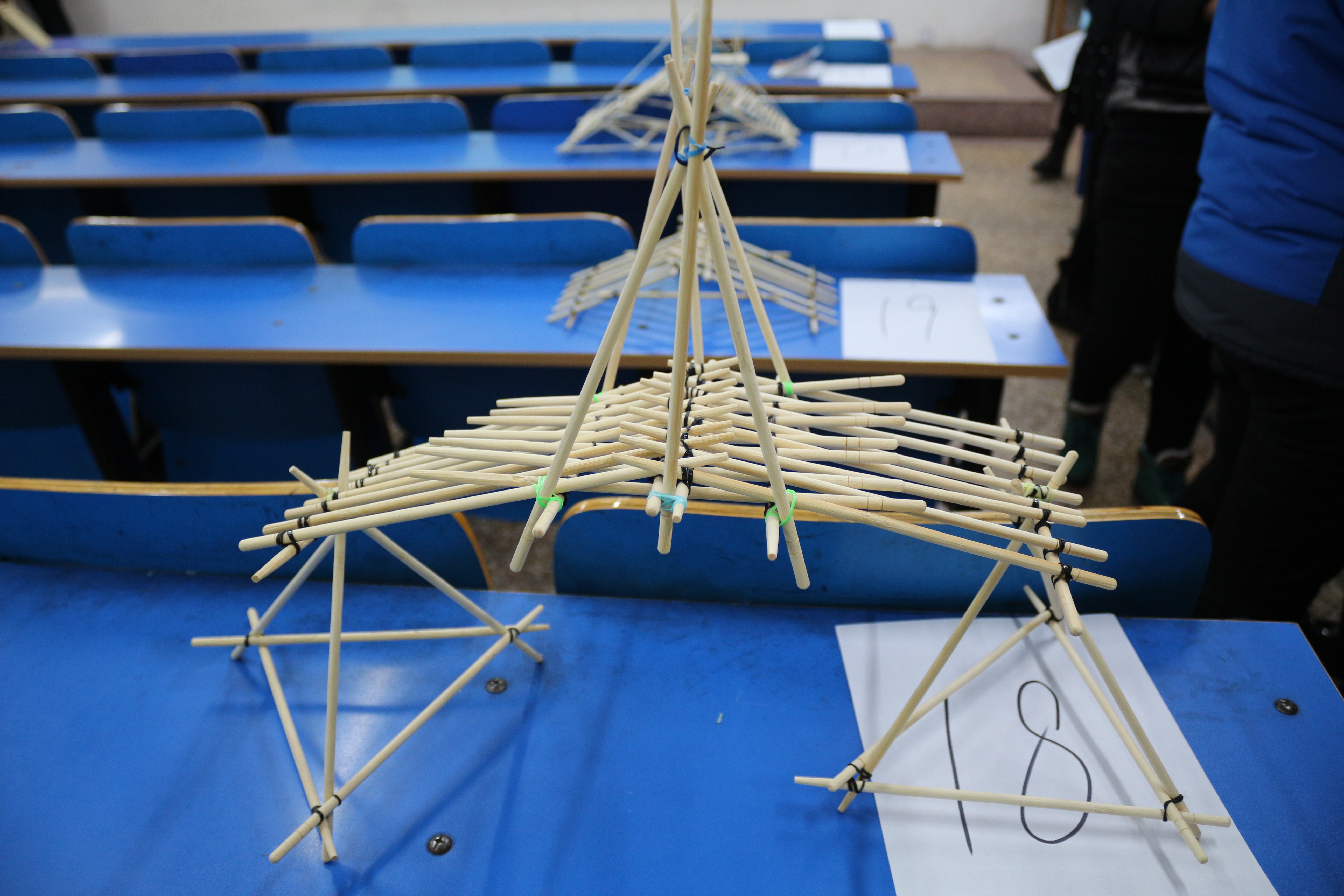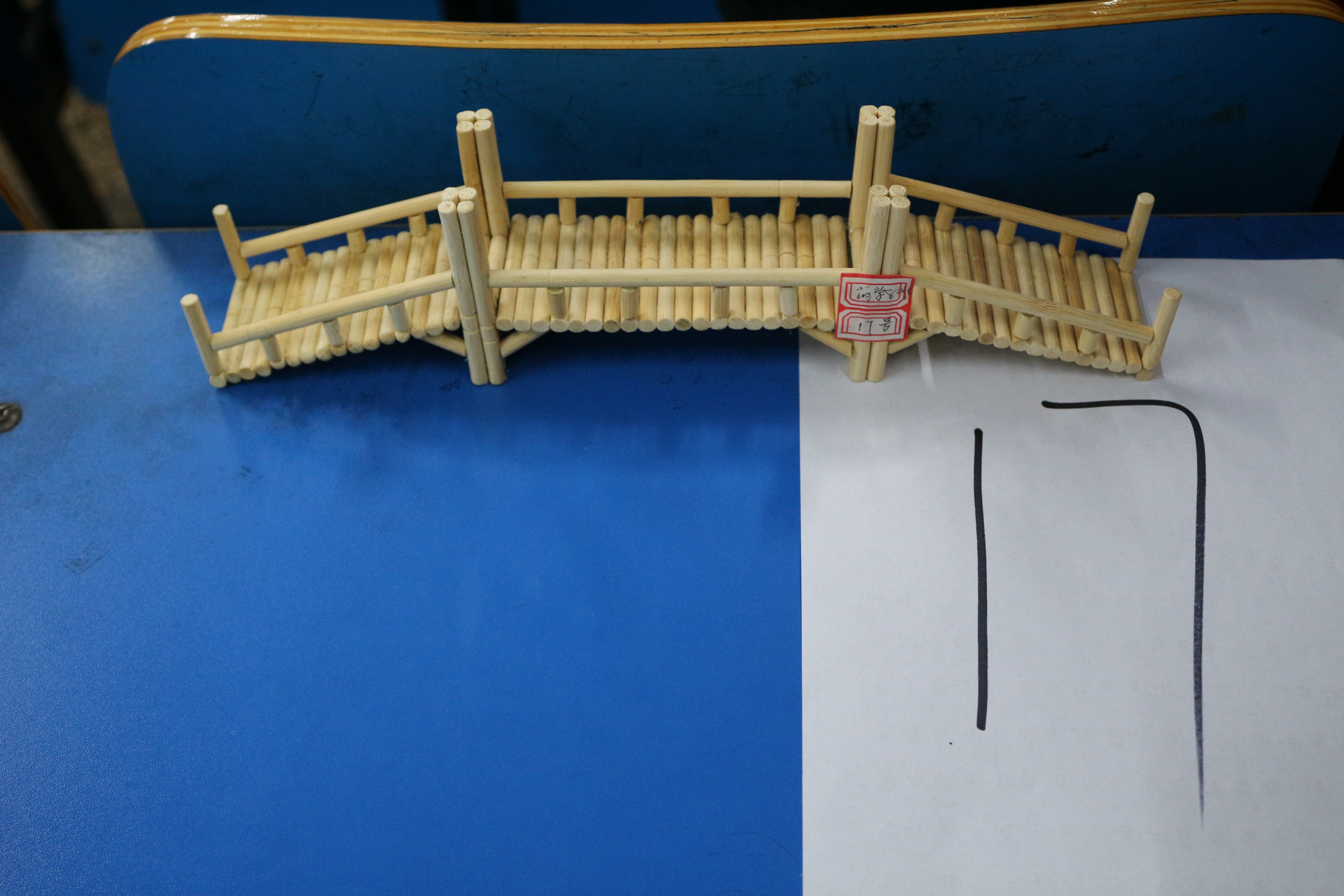 活动中,同学们的每个作品都别具一格。由筷子搭成的“长江七号”顶端飘扬的五星红旗,承载着人们的希冀;还有那一座温暖人心的“暖桥”;还有令人团结的“携手桥”......其中,最引人注目的是11号作品,选手以精彩的演说向大家展示了它的寓意,它不仅是一个手工作品,更承载的是生活的变迁。各个作品都以最平常的资源搭建了最美的“桥”。最后,李老师为本次活动进行了总结发言。经过激烈的比拼,15级药检一班F座337宿舍获得了特等奖。