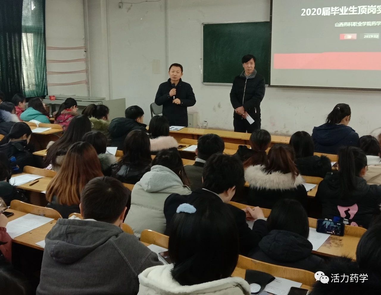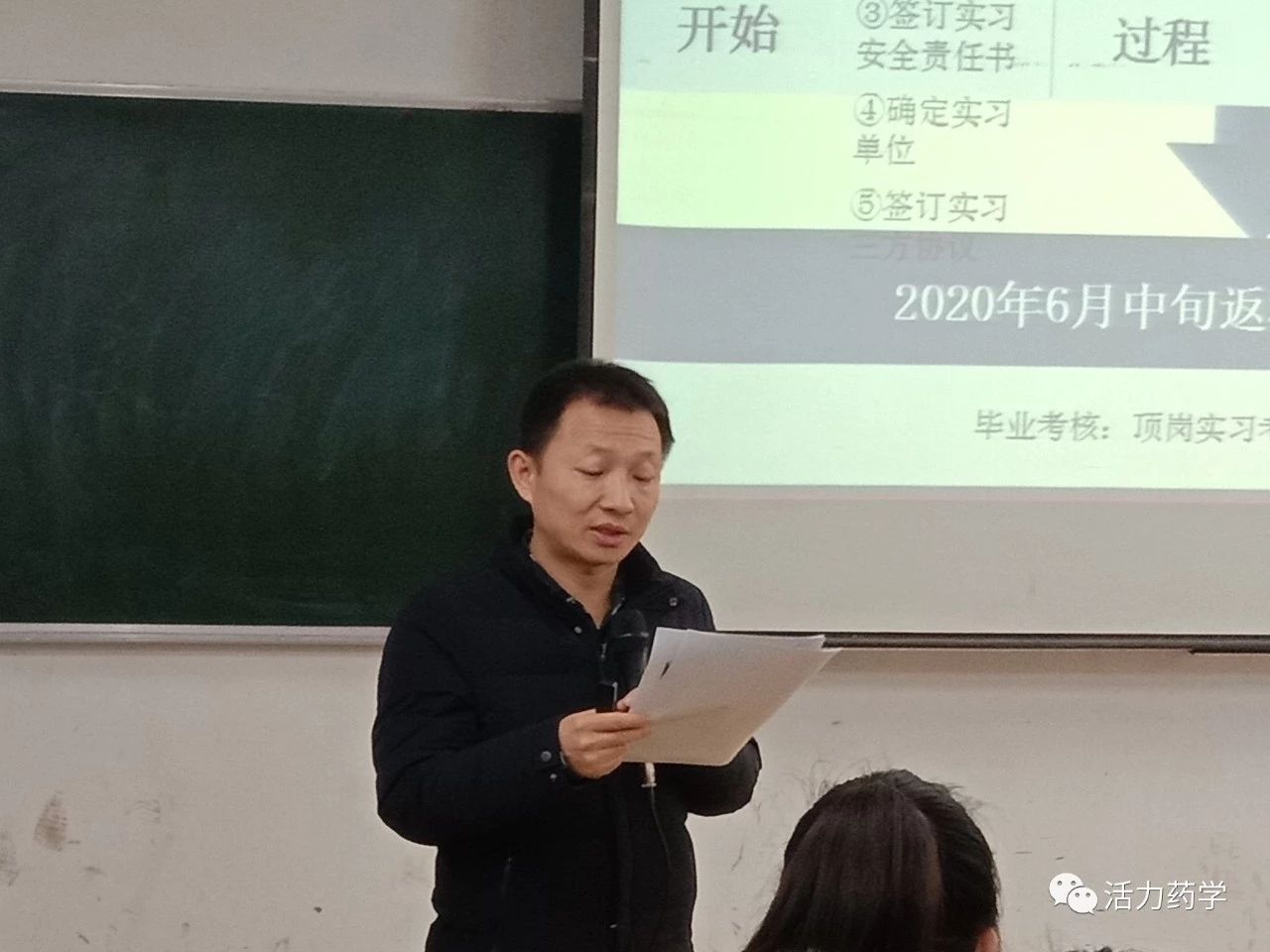 2020年1月2日下午,我系于东教学楼二层二阶召开了顶岗实习动员大会,参加本次会议的有药学系党总支书记原超,药学系副主任王明军以及18级药学(3+2)的全体同学。