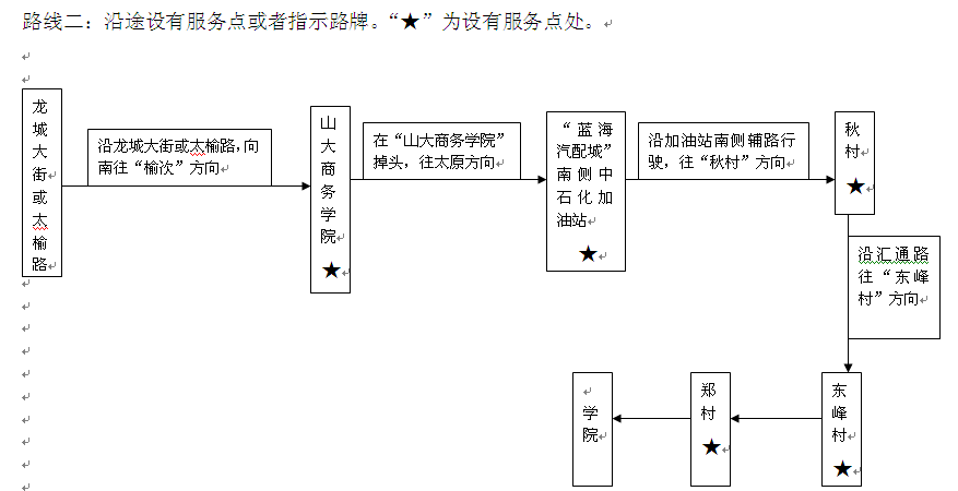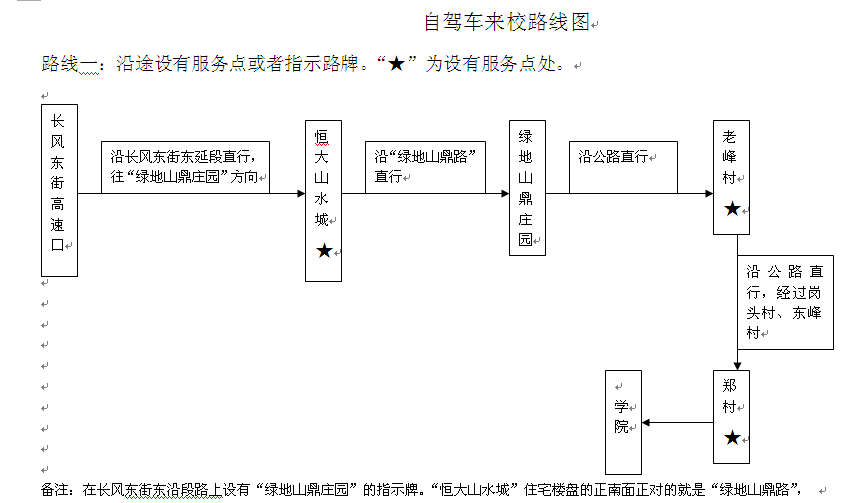 根据学院周边道路交通实际情况,现将自驾车来校路线通知如下,请2015级考生准备自驾车来校报到的新生及时做好出行安排。
