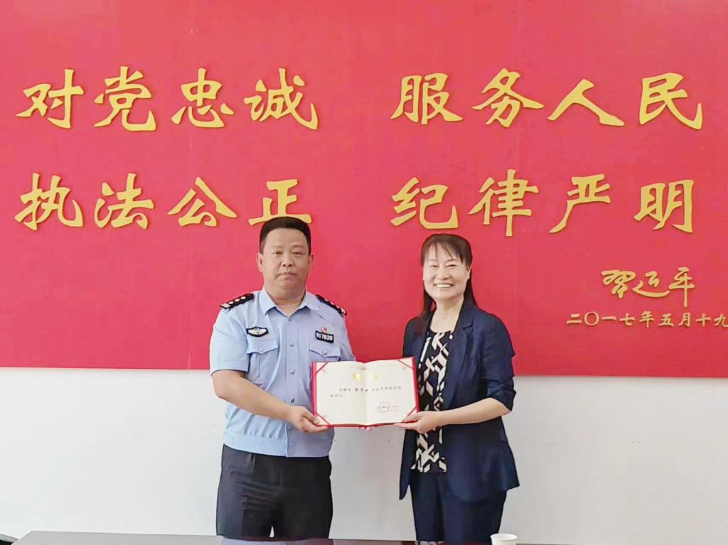 学院党委副书记、院长张轩萍代表学院为黄陵派出所所长苗军峰颁发了法治副院长聘书。