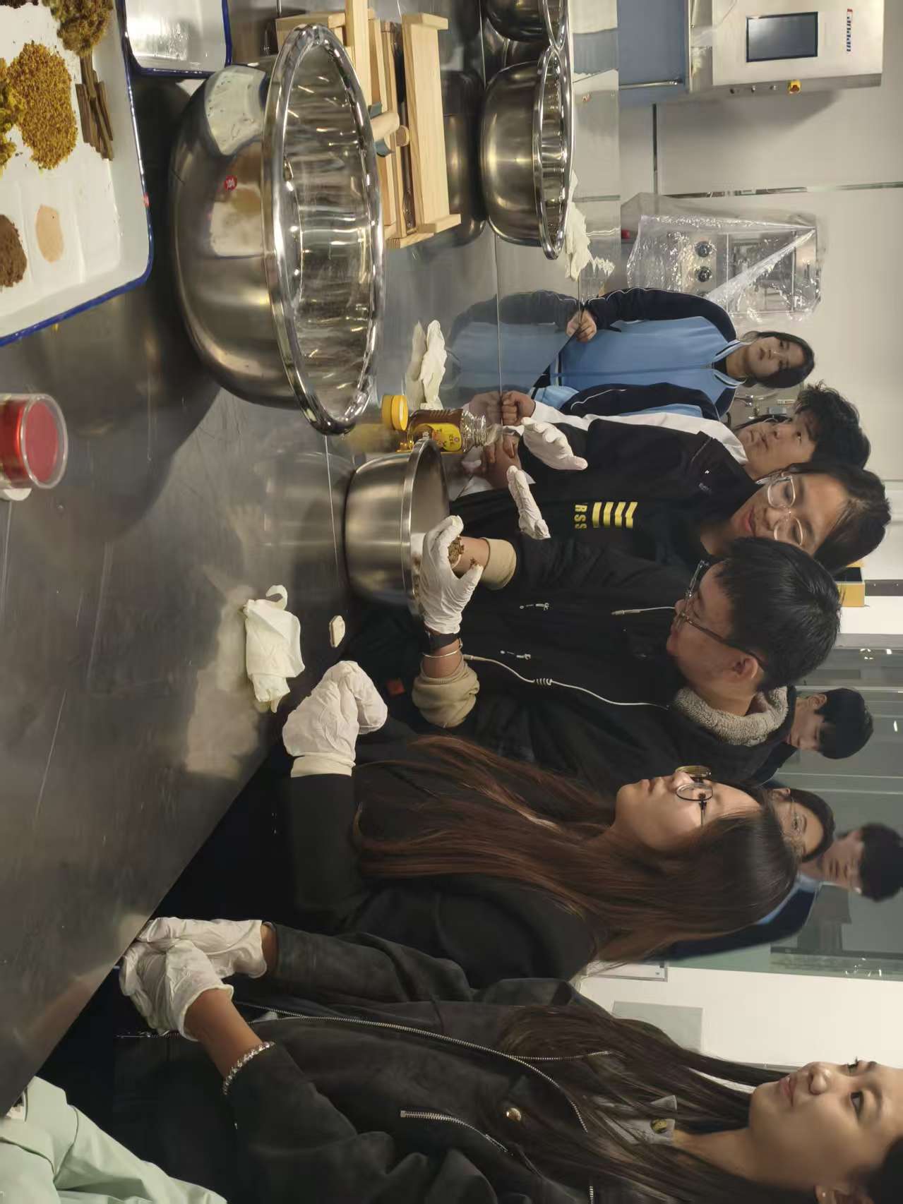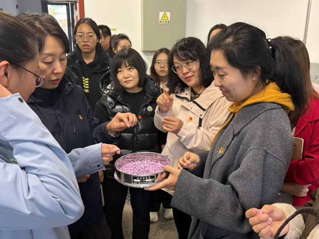 活动第四项,制药系社团和药剂专业学生开展“药韵同行・探知制药奥秘”活动,现场展示“澡豆”制作过程。两校学生亲切交流,并在制药系学生的指导下亲身参与“澡豆”制作。活动中,大家将“打粉去杂、揉捻守度”的制丸智慧与“清正廉洁、坚守底线”的理念相结合,在亲手操作每一道工序的过程中,直观感悟廉洁真谛——如同去杂要彻底、揉捻要守度一般,做人做事亦需摒弃杂念、坚守原则。