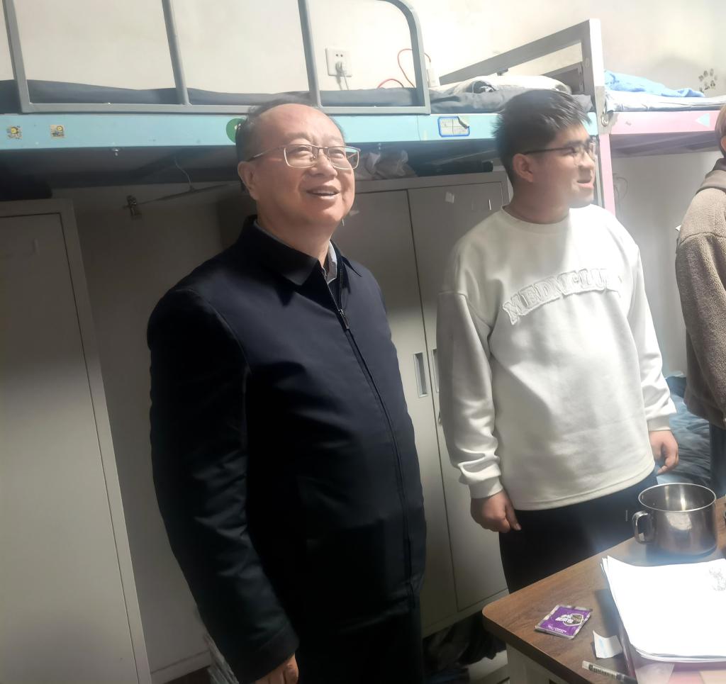 随后,沈宝荣以成长导师身份走进所联系制药系学生的宿舍,与同学们面对面亲切交流。他仔细查看宿舍居住环境,关切询问大家的饮食起居、知识学习、专业实践及课余活动情况,耐心倾听同学们在校园生活中遇到的困惑与建议。在得知同学们能够认真学习,积极参与各类校园活动时,他给予了充分肯定。