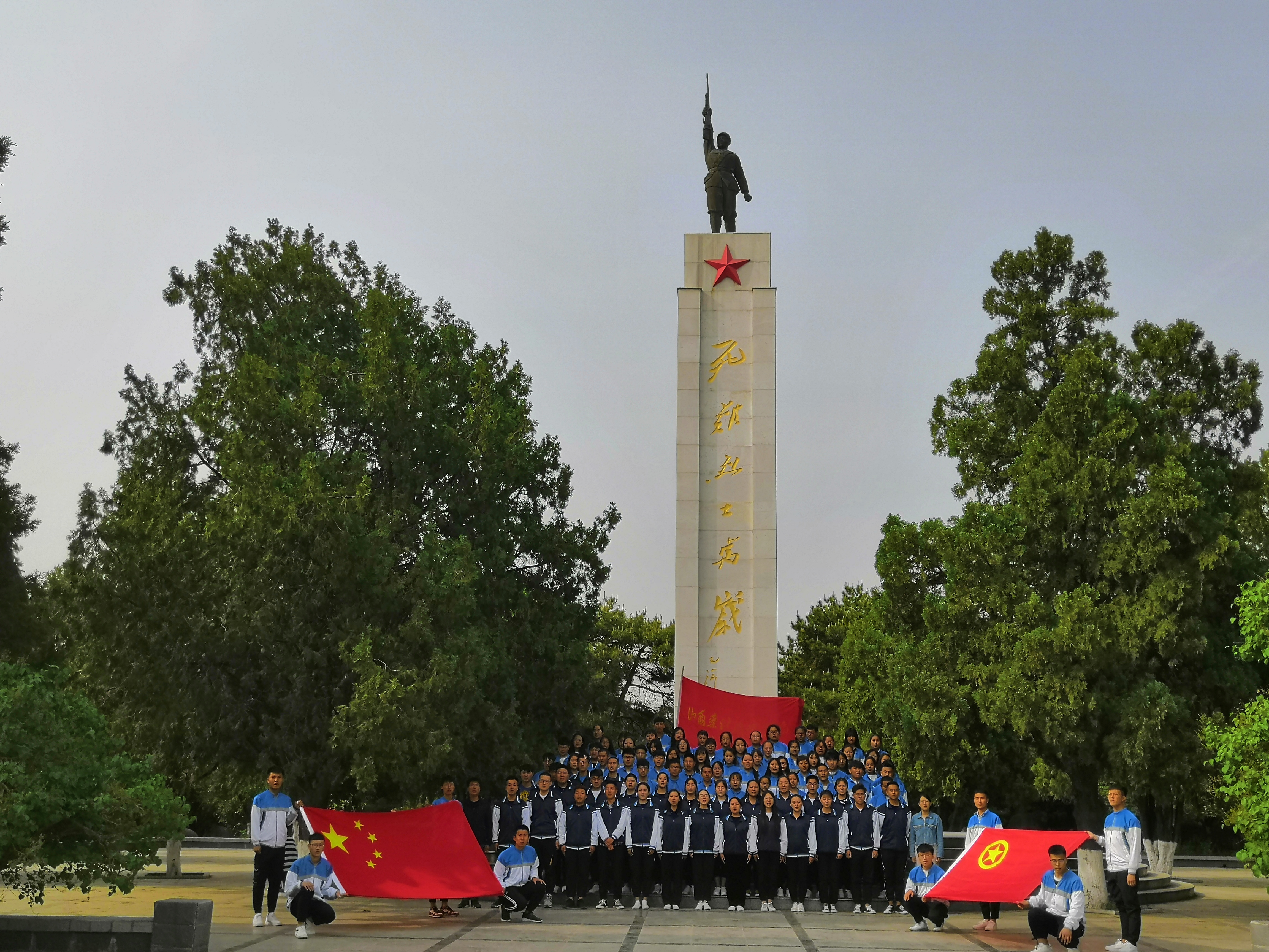 活动现场辅导员黄高伟,宋月荷及一名学生代表敬献手中鲜花,瞻仰郑村革命烈士纪念碑,并深深鞠躬。随后全场肃立向烈士默哀,默哀完毕所有团员青年齐唱团歌,缅怀革命先烈,追忆英雄事迹。最后在革命烈士纪念碑前团员青年重温入团誓词,铭记入团使命,不忘入团初心。共唱《我和我的祖国》传承五四精神,用青春的方式向祖国深情表白!