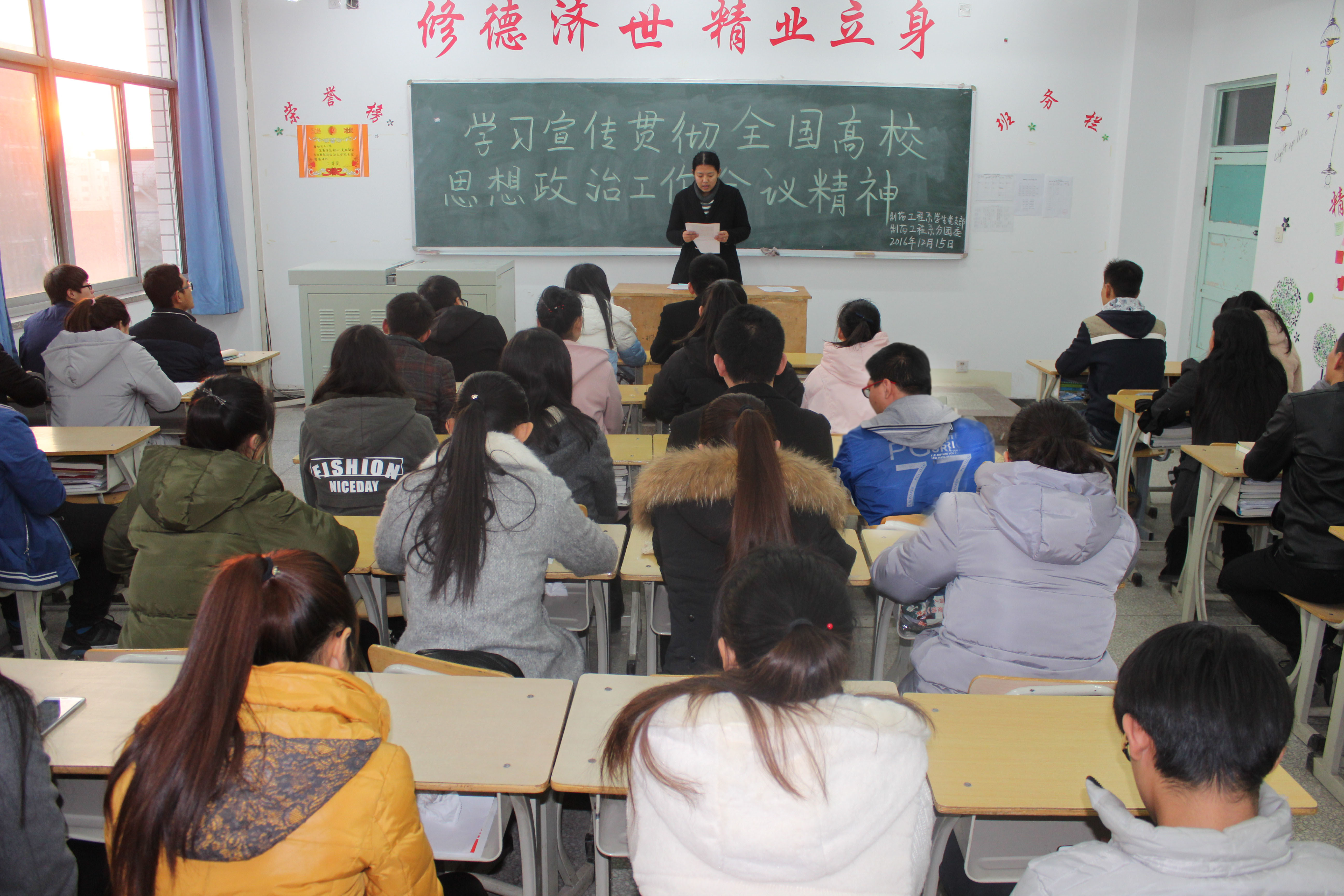 12月15日下午,制药工程系学生党支部与分团委组织全体学生干部及入党积极分子集中学习全国高校思想政治工作会议精神。
