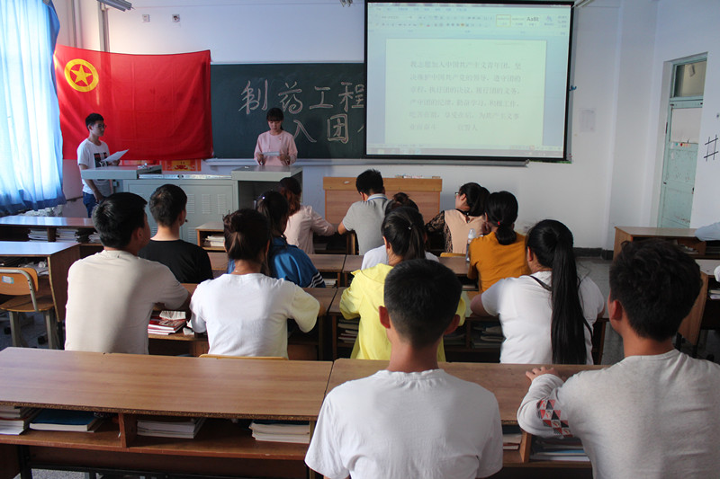 近日,制药工程系分团委在东教学楼406教室举行“制药工程系新团员入团仪式”活动。分团委副书记王艺芳(主持工作)、席亚茹、黄高伟出席了本次活动。