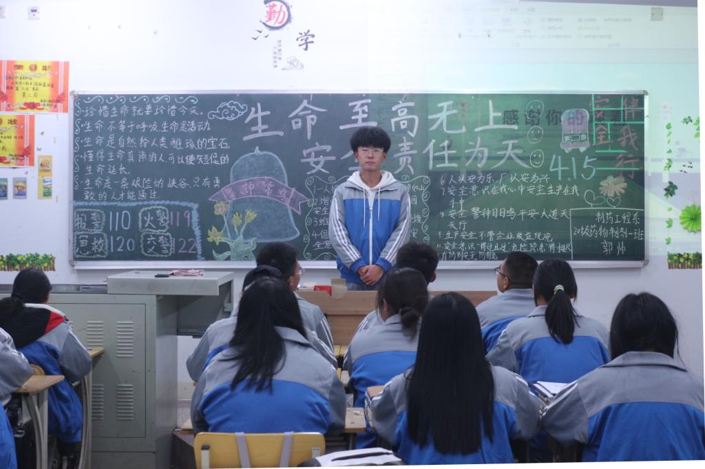 为进一步加强平安校园建设,增强全体学生的安全意识,营造一个更安全、更文明、更和谐的校园环境。制药工程系于12月20日开展“生命至高无上 安全责任为天”主题班会。