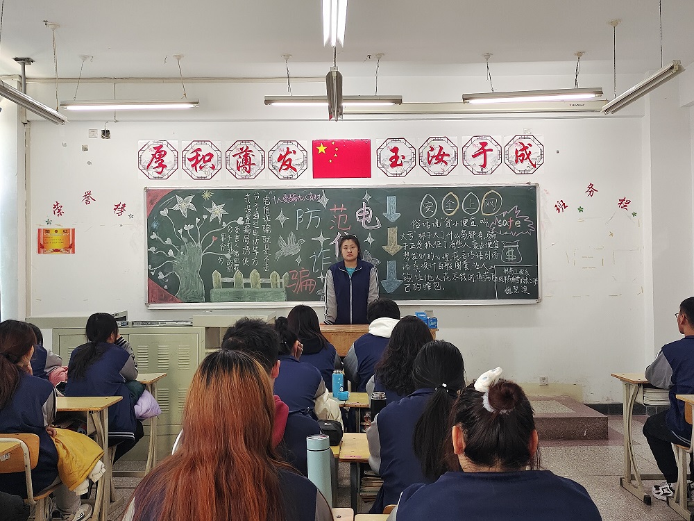 团课中,团支书通过ppt的形式,结合发生在高校的电信诈骗真实案例,分别对电信网络诈骗的概念、分类;校园电信网络诈骗的常见形式;如何识别防范电信网络诈骗以及上当受骗后的补救措施进行了详尽的讲解,提醒学生要时刻保持警惕,提高个人防范意识。特别强调了应远离案件高发的校园贷、网络游戏诈骗、网络刷单诈骗、奖学金助学金诈骗等形式的陷阱。