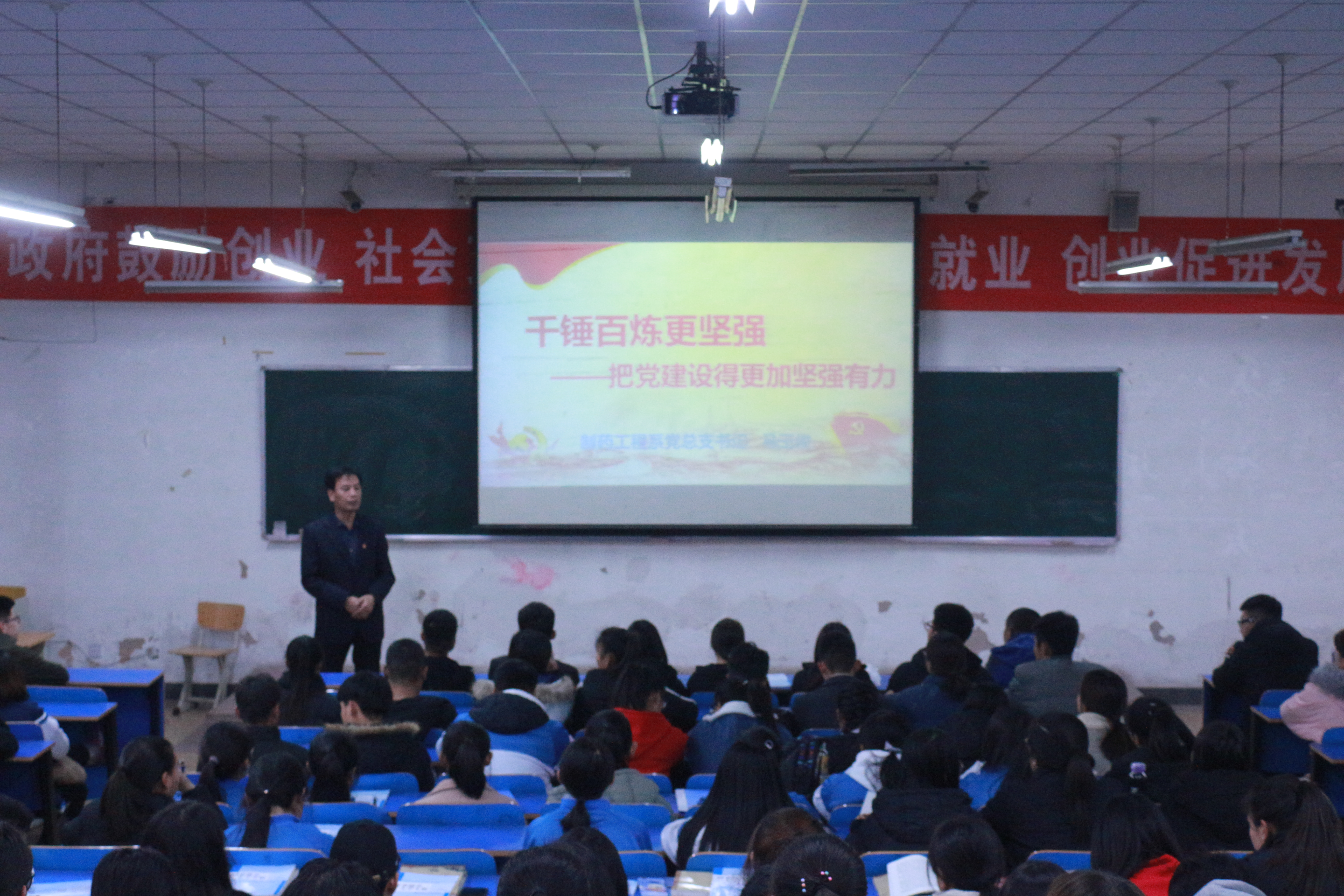 为进一步加强入党积极分子的培养和教育,提高入党积极分子思想政治觉悟,深入贯彻习近平新时代中国特色社会主义思想,学好党的基本理论知识,深化对党的认识,端正入党动机。11月20日,制药工程系党总支书记马王俊同志在东教学楼为我系入党积极分子及部分大一新生讲授“千锤百炼更坚强——把党建设得更加坚强有力”主题党课。